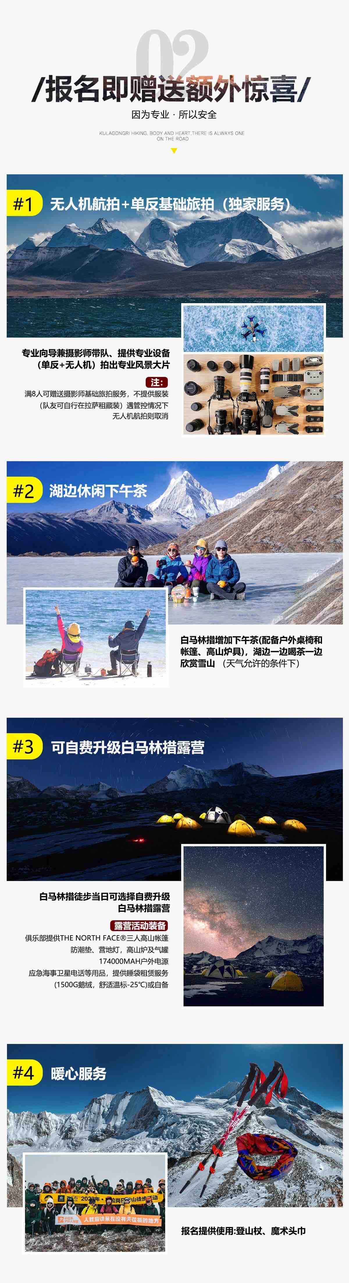 5、体力要求:本次行程徒步在高海拔地区,全程轻装,需身体健康,无重大疾病史者。