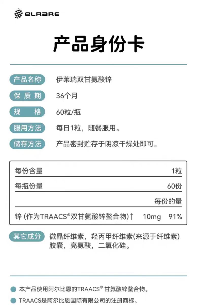 海淘 ELRARE伊莱瑞 Zinc Bisglycinate 10mg 双甘氨酸锌 双倍锌养护 成长锌力量 26/8