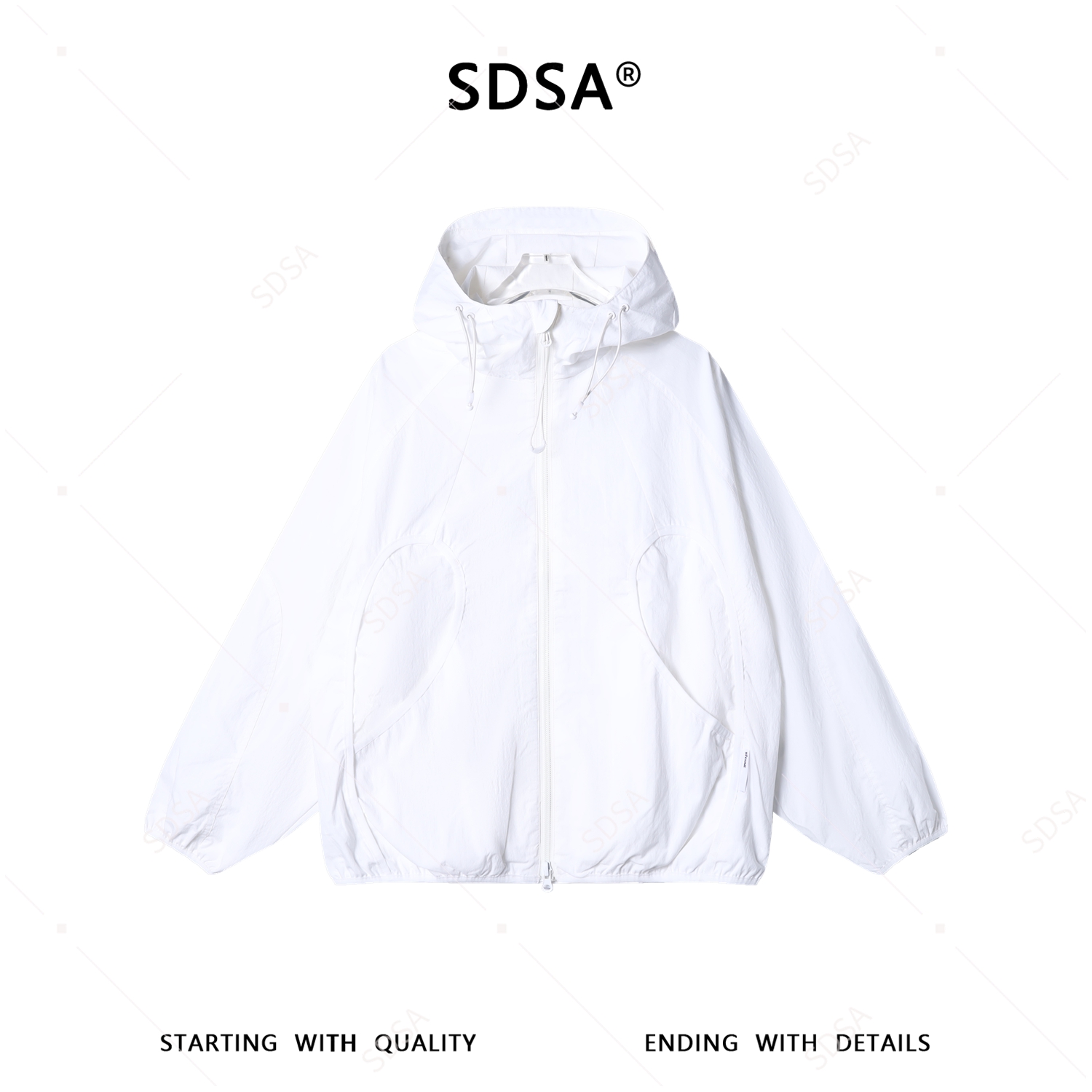 SDSA男装2026新款高贵轻奢百搭简约拼接纯色拉链立领连帽夹克时尚
