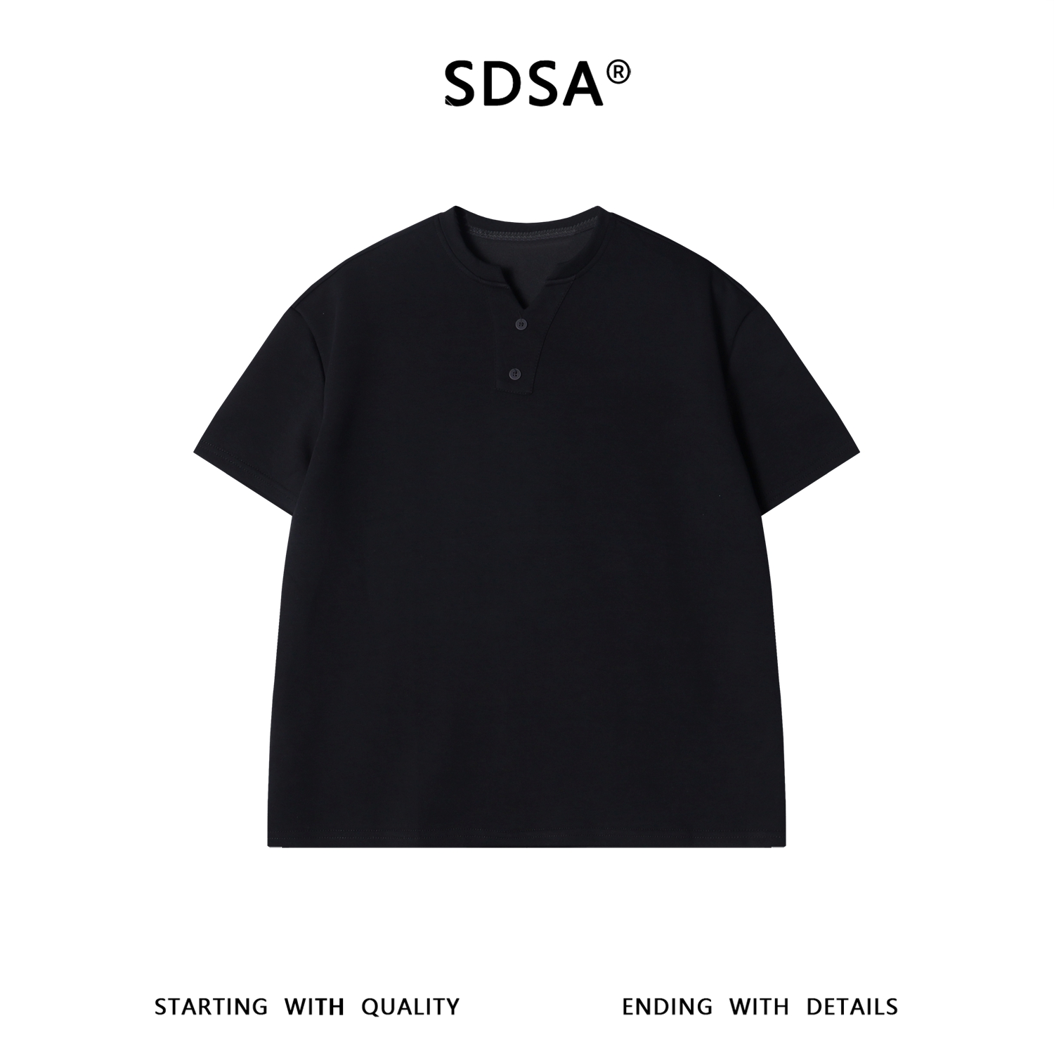 SDSA男装2026新款高贵轻奢亨利领两粒扣短袖T恤宽松重磅休闲上衣