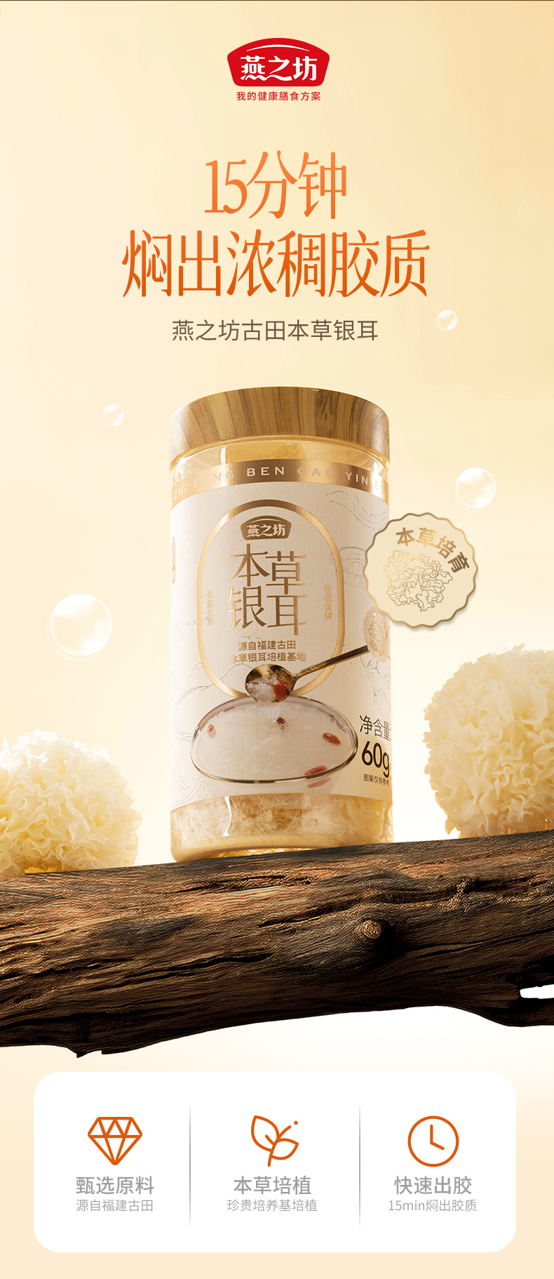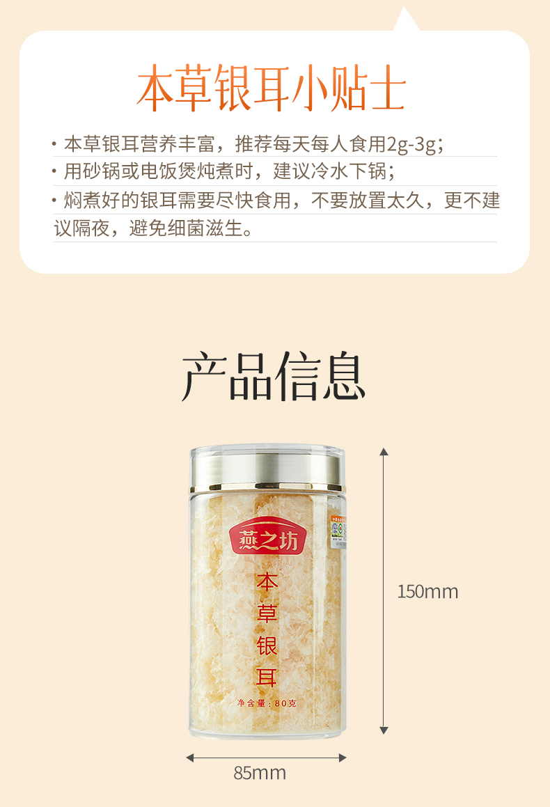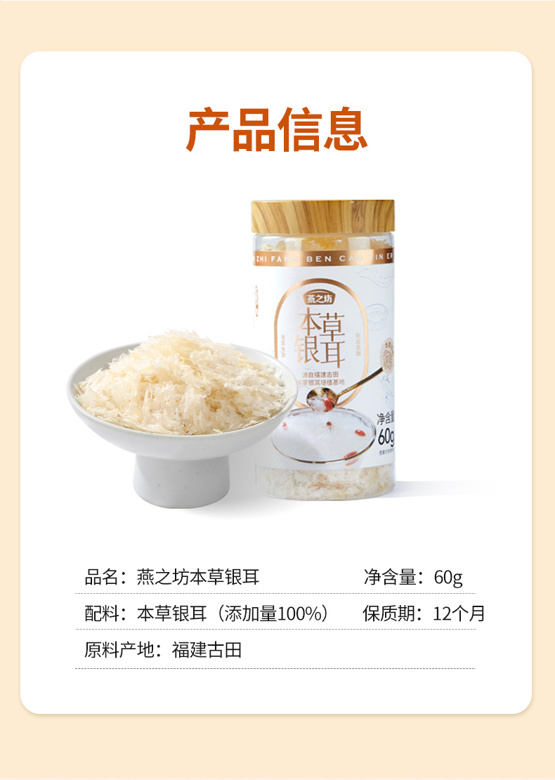 燕之坊 有机本草银耳罐装 福建干货银耳羹尖冲泡焖煮免泡发 非有机可选