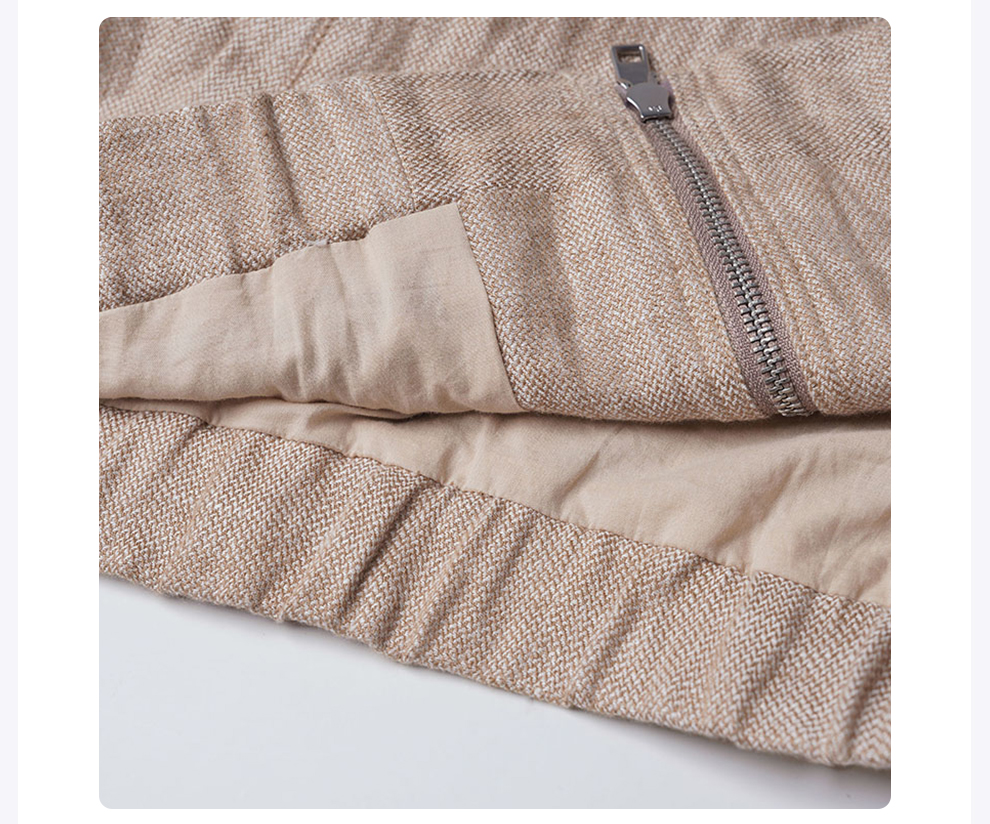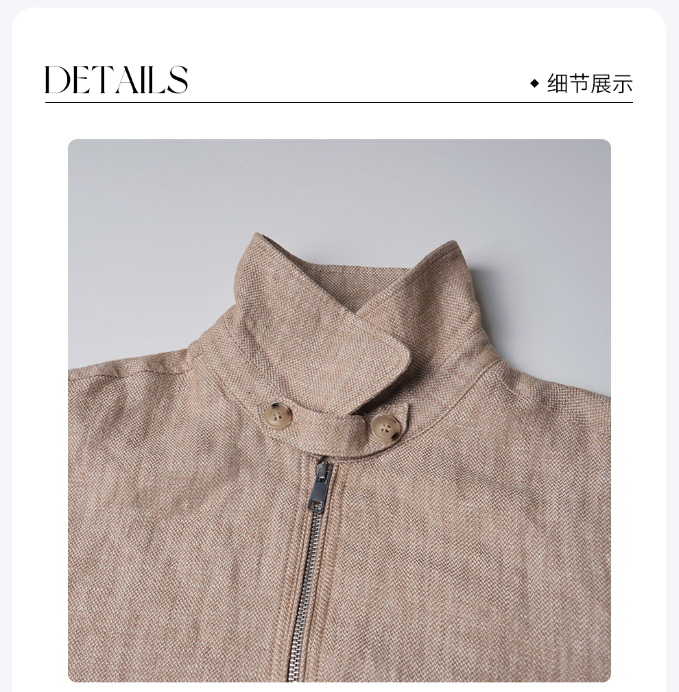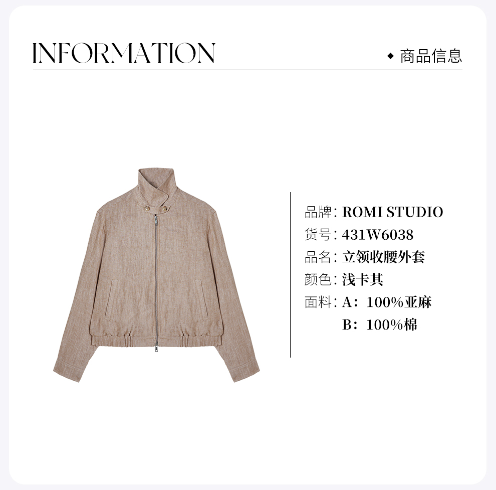 ROMI STUDIO“远山之间”100%亚麻立领收腰飞行员夹克外套 431W6038