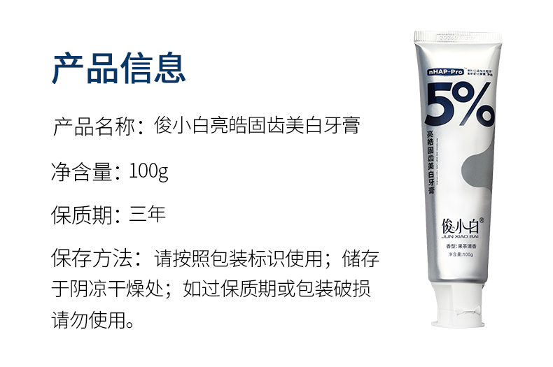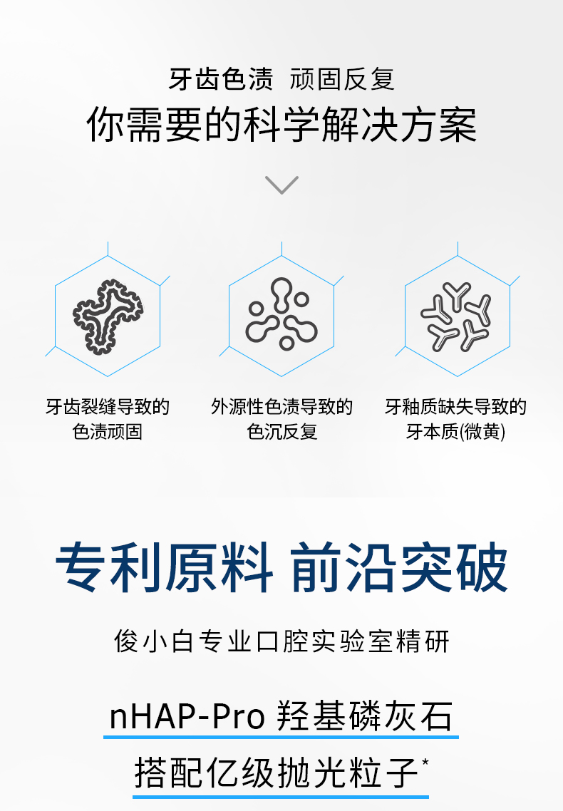 【功效:祛除顽固污渍】俊小白nHAP-pro美白牙膏酵素净白牙膏亮皓固齿炫白