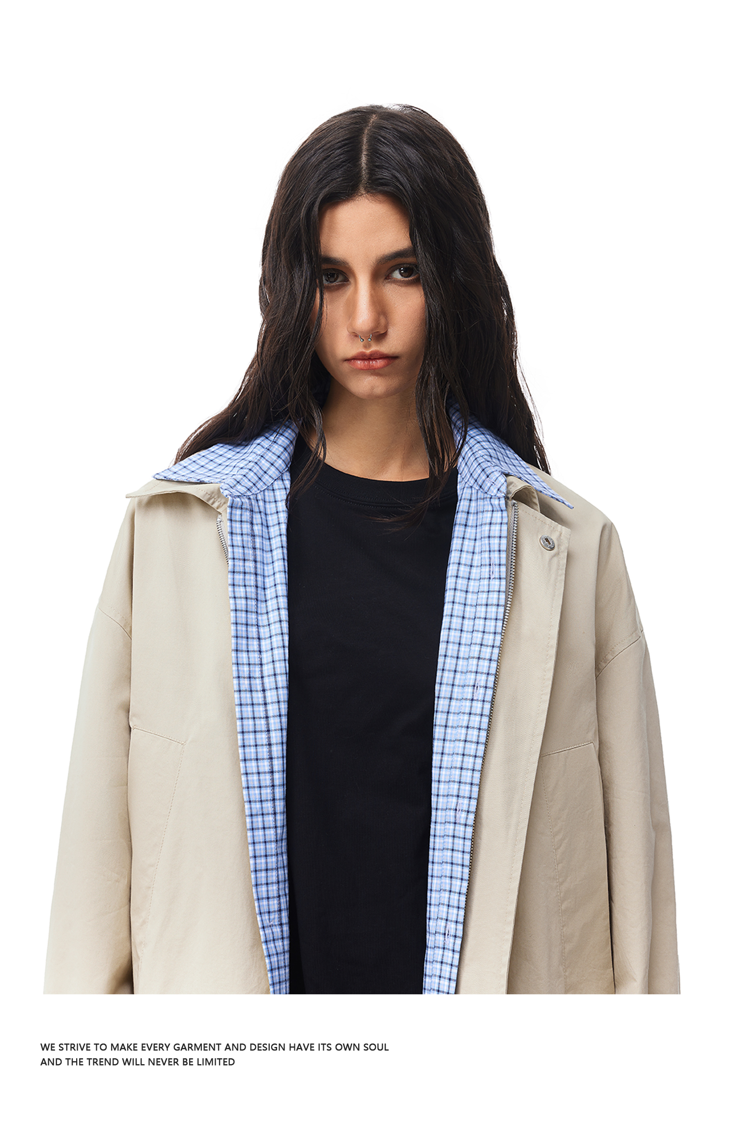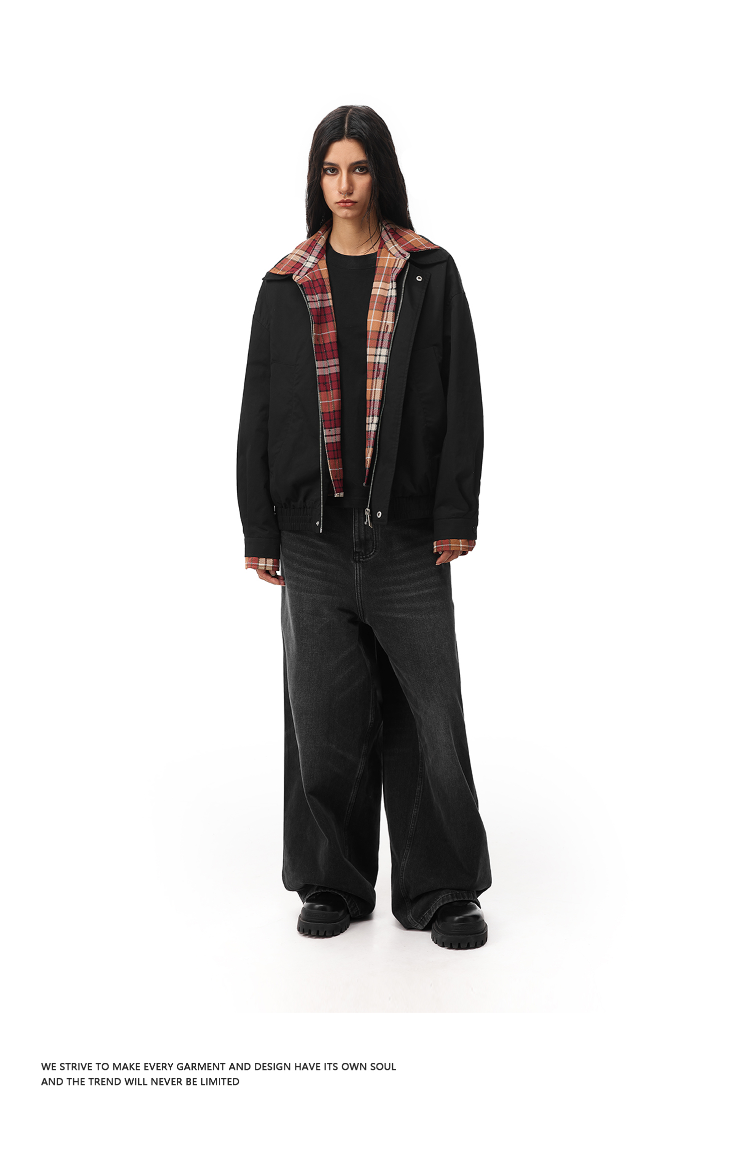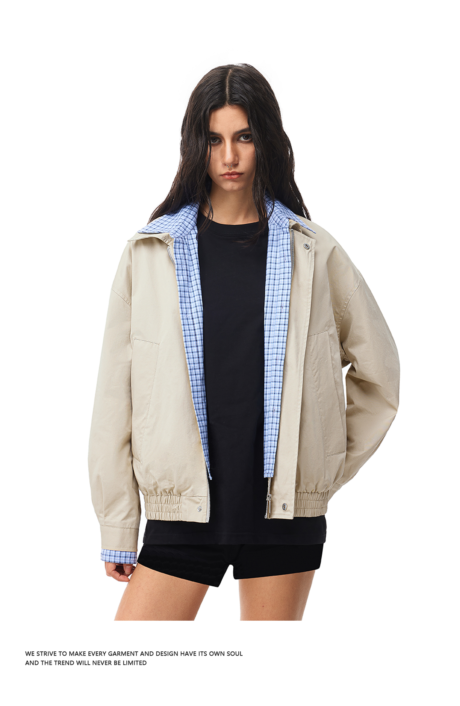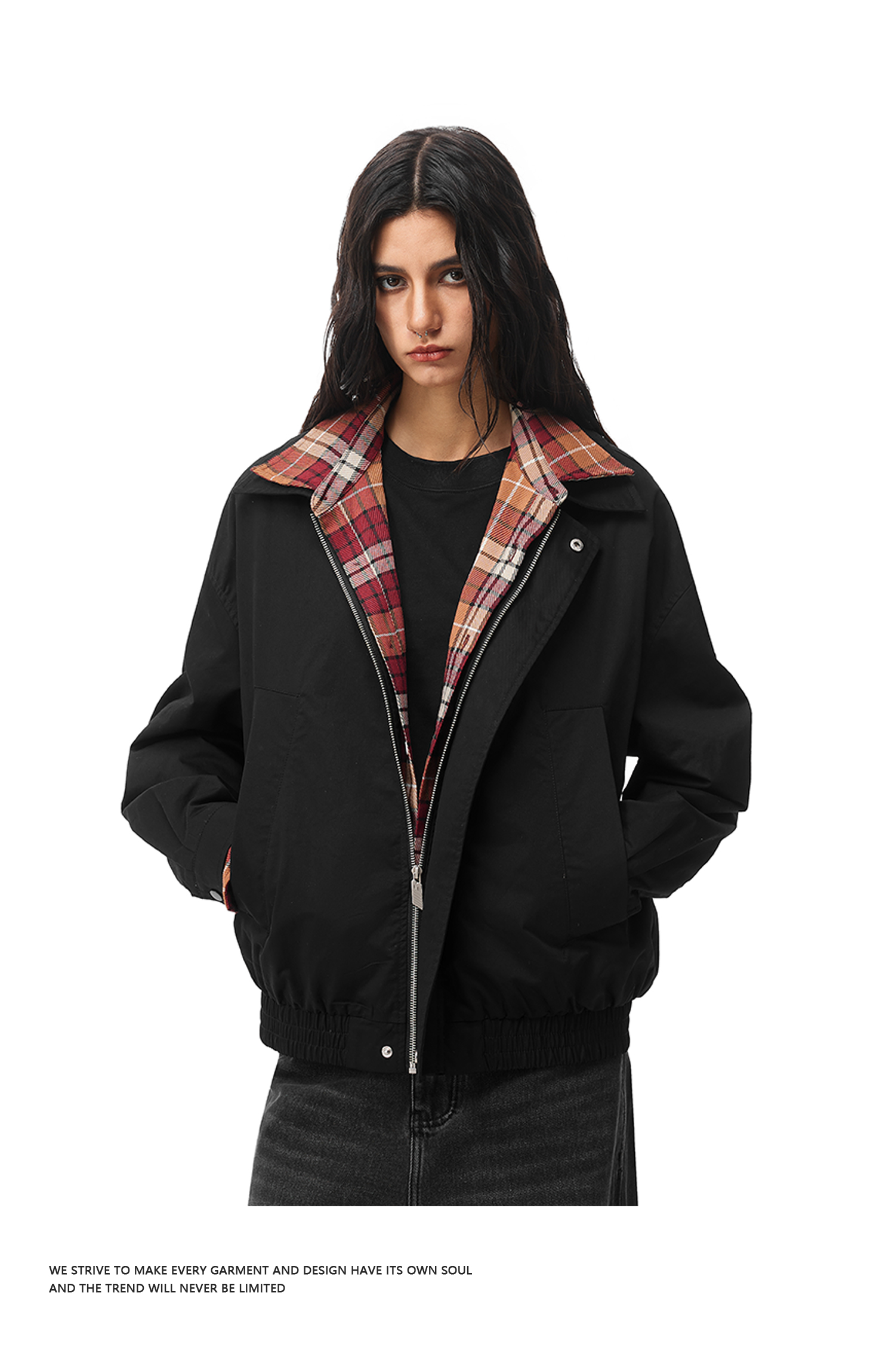 FDR官方店 撞色拼接格子假两件夹克外套男女春季翻领情侣开衫上衣