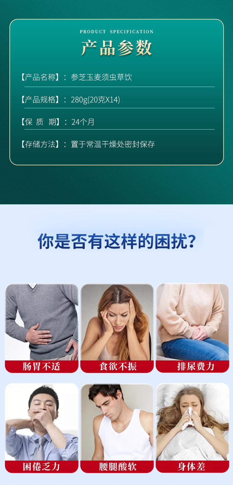 紫御东方渗栋力参芝玉麦须虫草饮280g(20g*14袋)