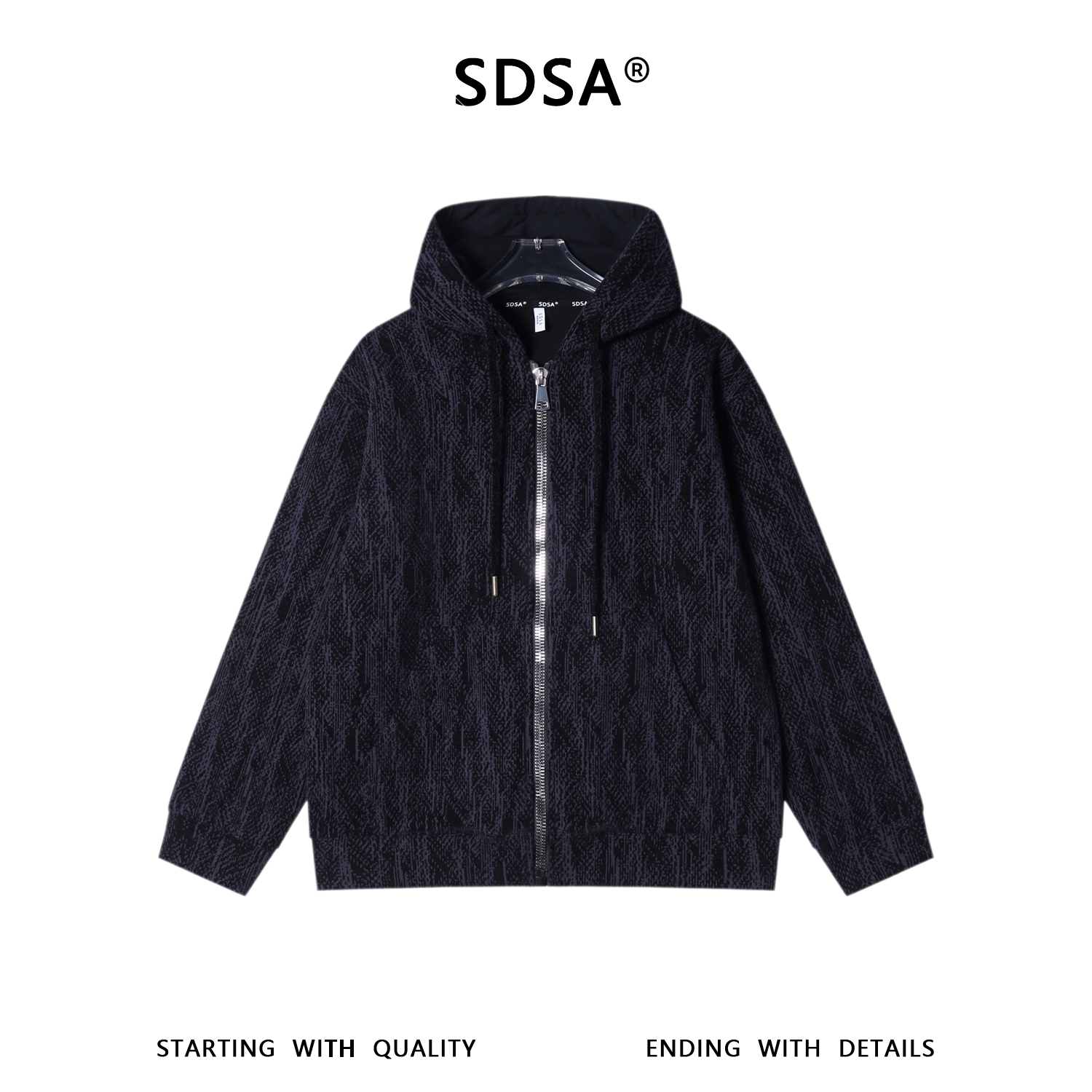 SDSA男士秋冬新款痞帅男装高街提花撞色拉链连帽卫衣外套百搭时尚