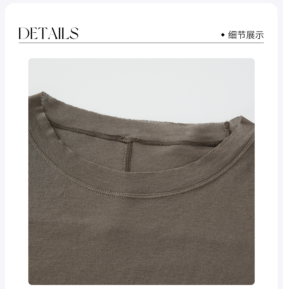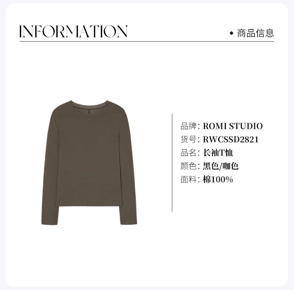 ROMI STUDIO极简风精梳全棉轻薄垂感毛边圆领长袖T恤 RWCSSD2821