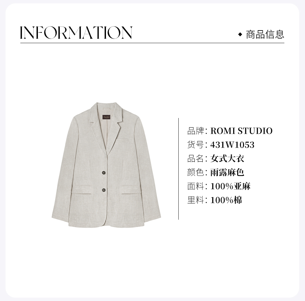 ROMI STUDIO “自我轮廓” 100%雨露麻肌理感阔型西装外套 431W1053