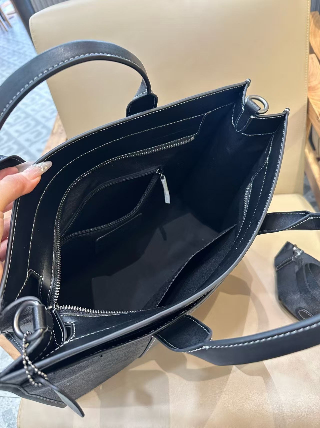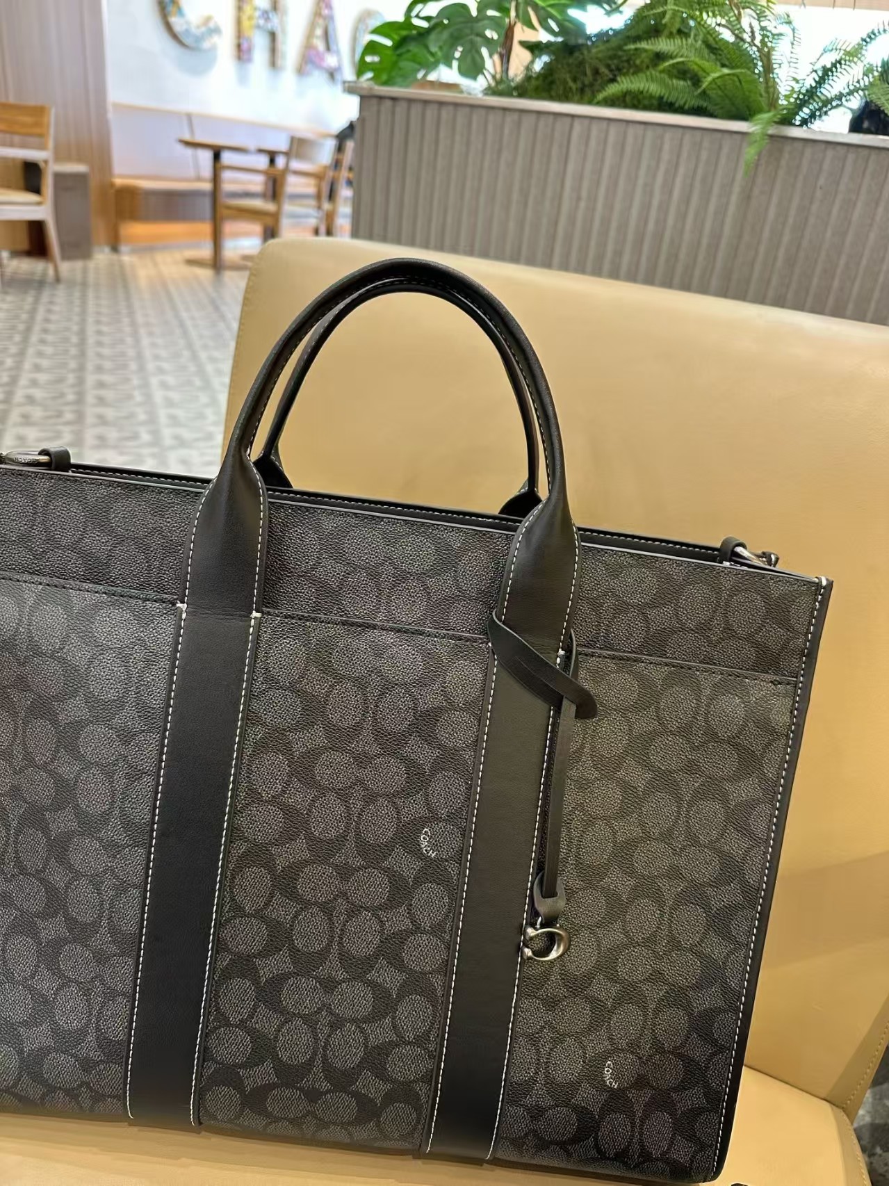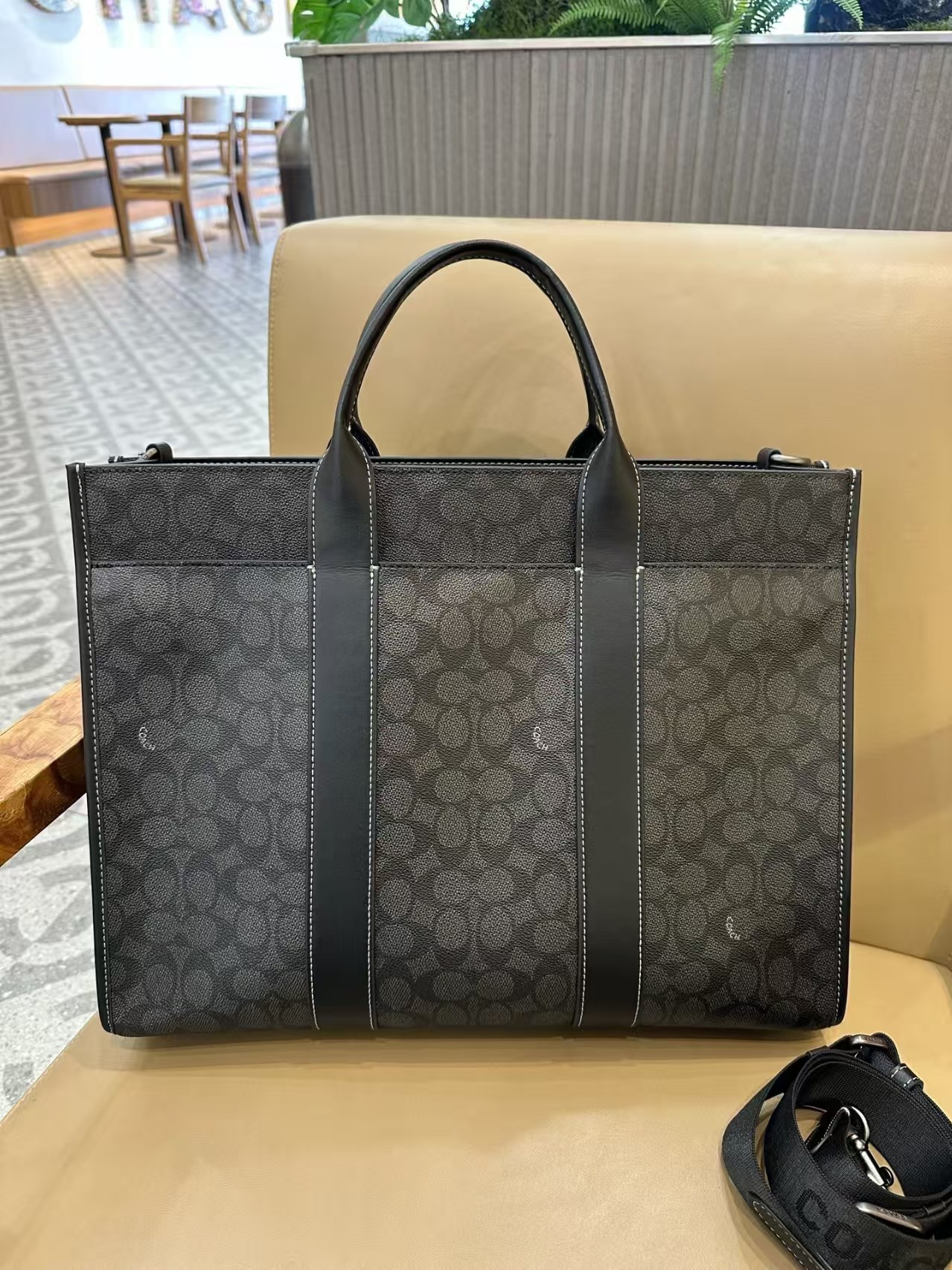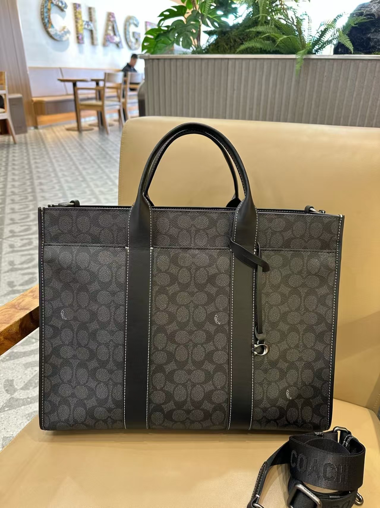 COACH蔻驰 Wesley 41 品牌徽标拉链开合 人造革 托特包ote包购物袋单肩手提包 大号 男女同款情侣款 木炭灰色