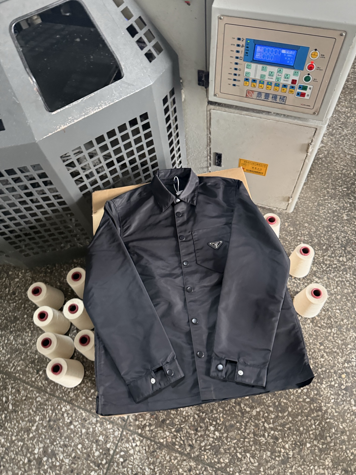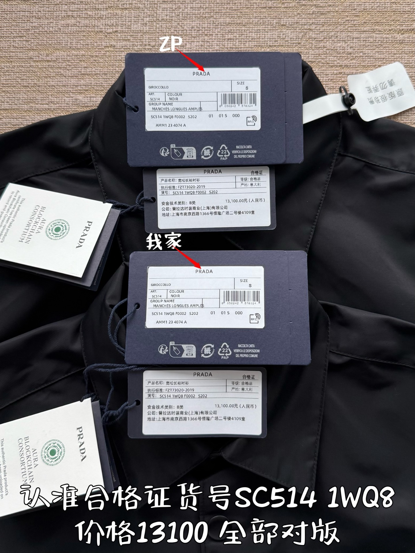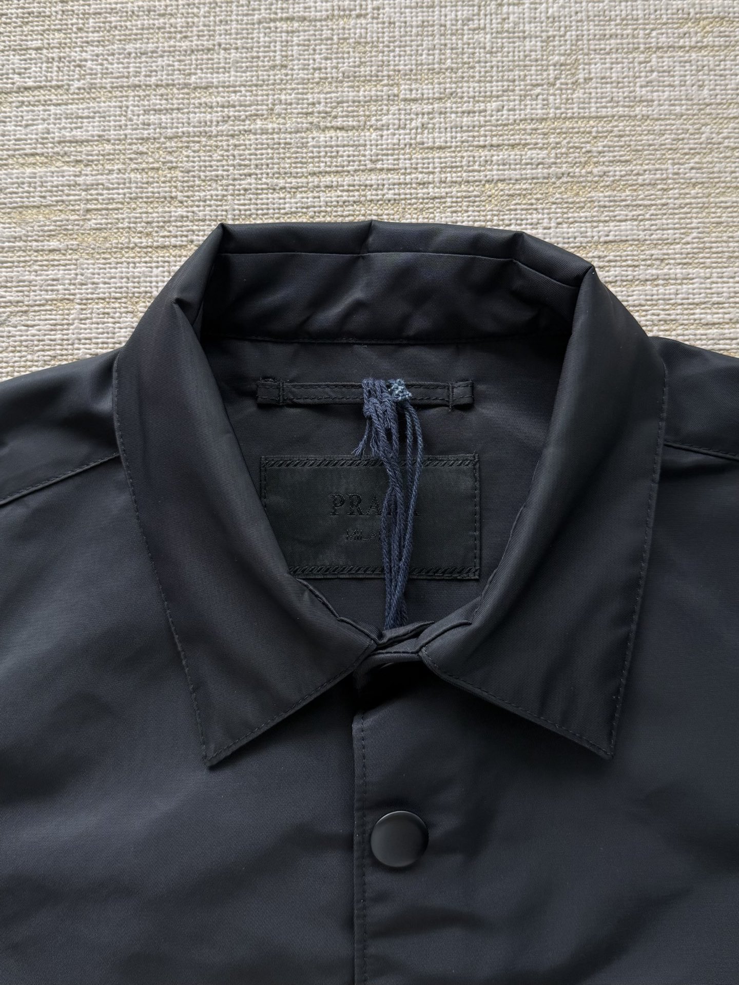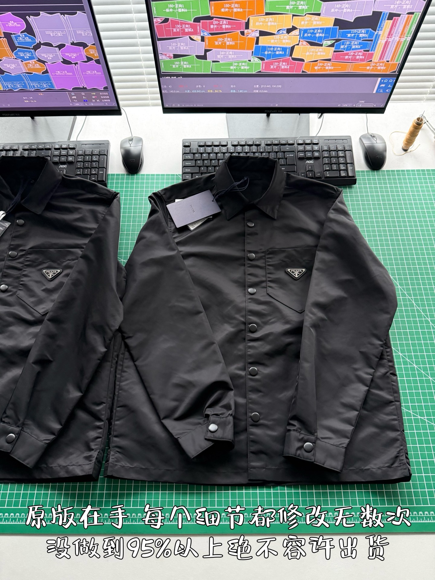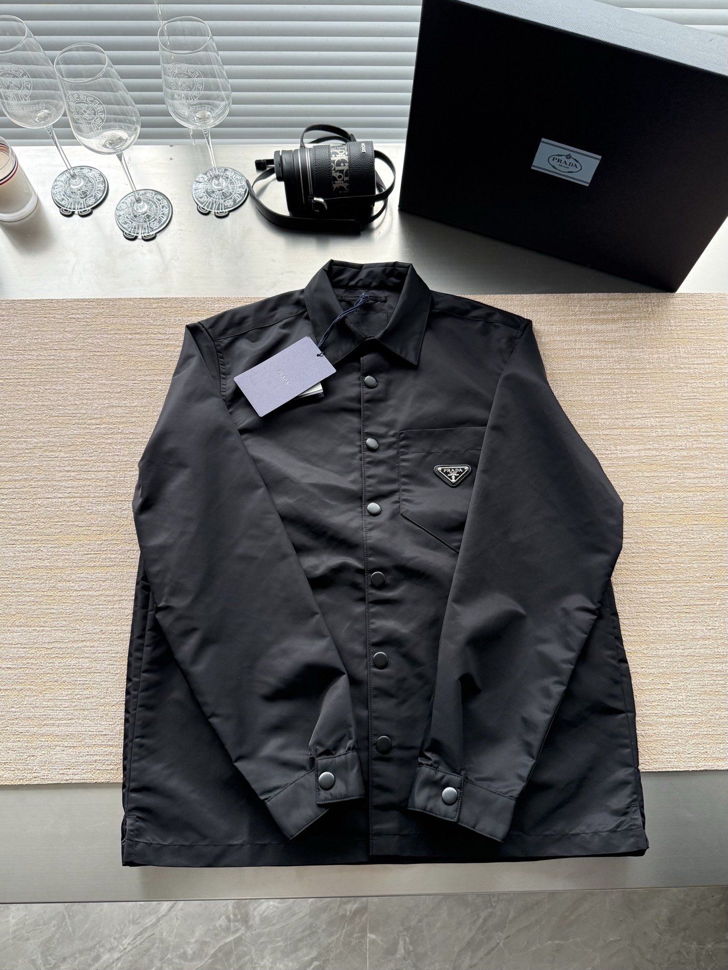PRADA25FW三角标再生尼龙长袖衬衫‼️整件衣服13100购买ZP拆解打造,定制黑色再生尼龙面料,胸前贴袋设计,饰以三角标字母标识徽章,门襟 袖口开模定制纯色电镀五金纽扣,真正做到1:1copy 闭眼入 码数:S M L XL