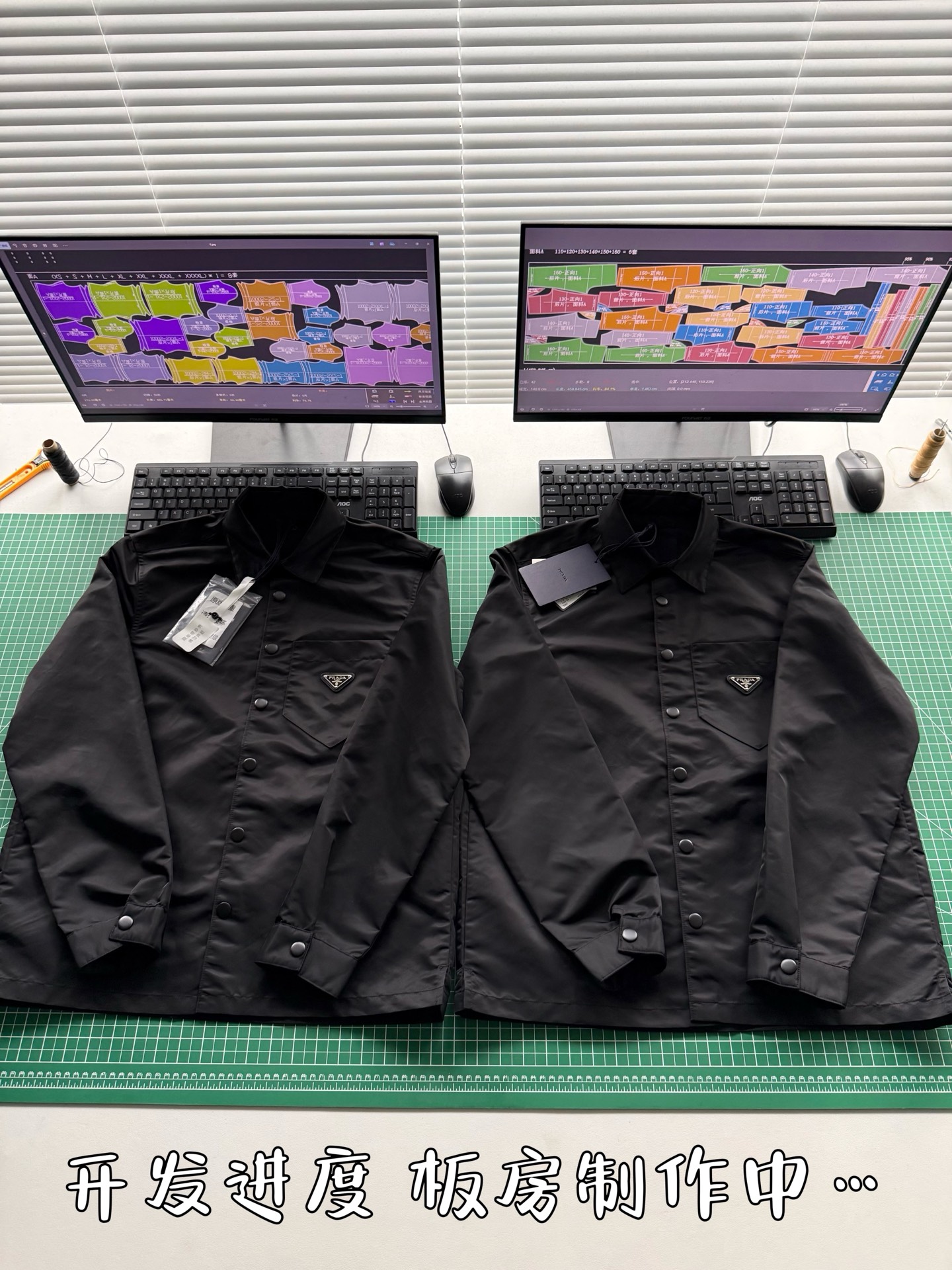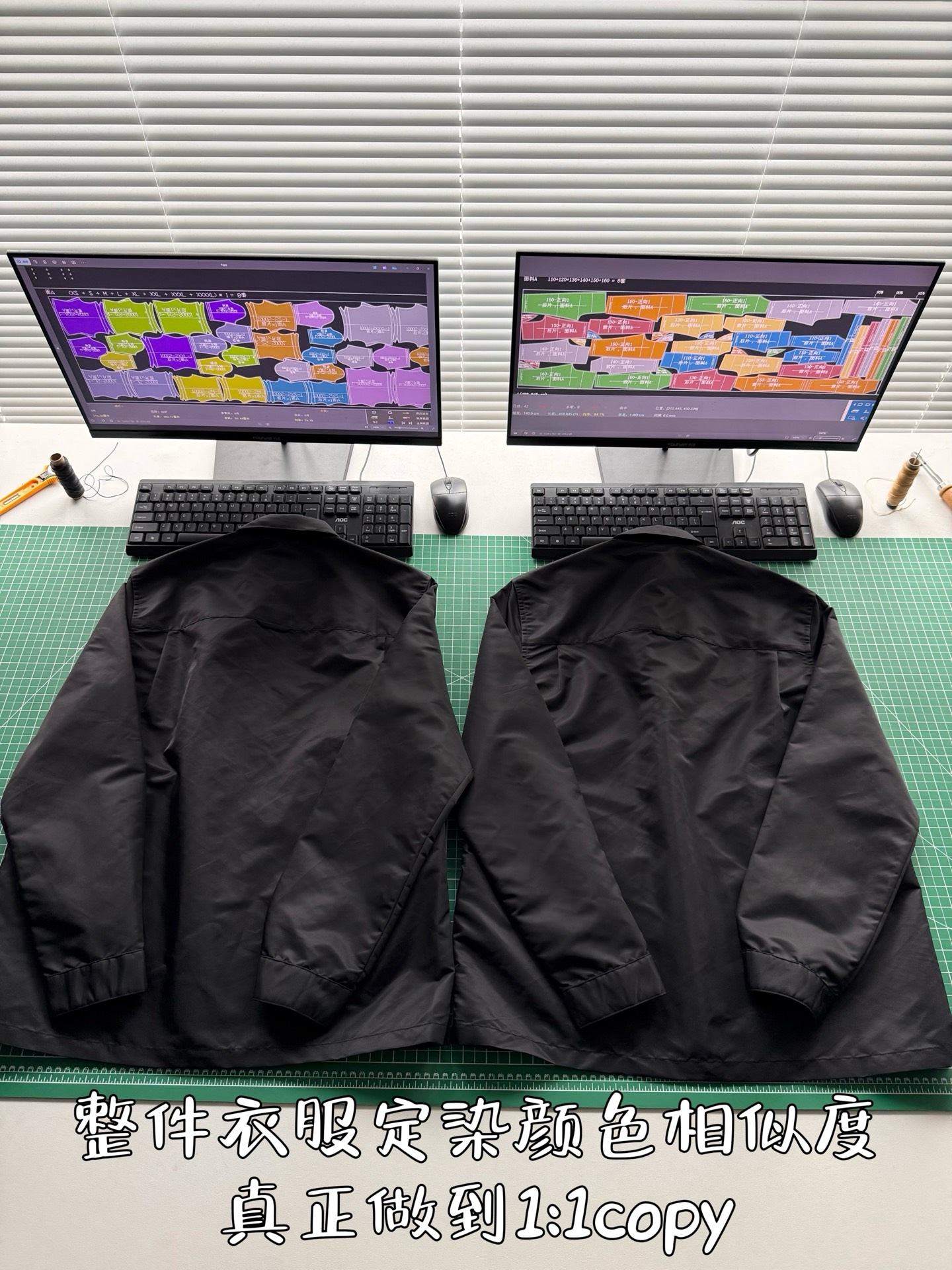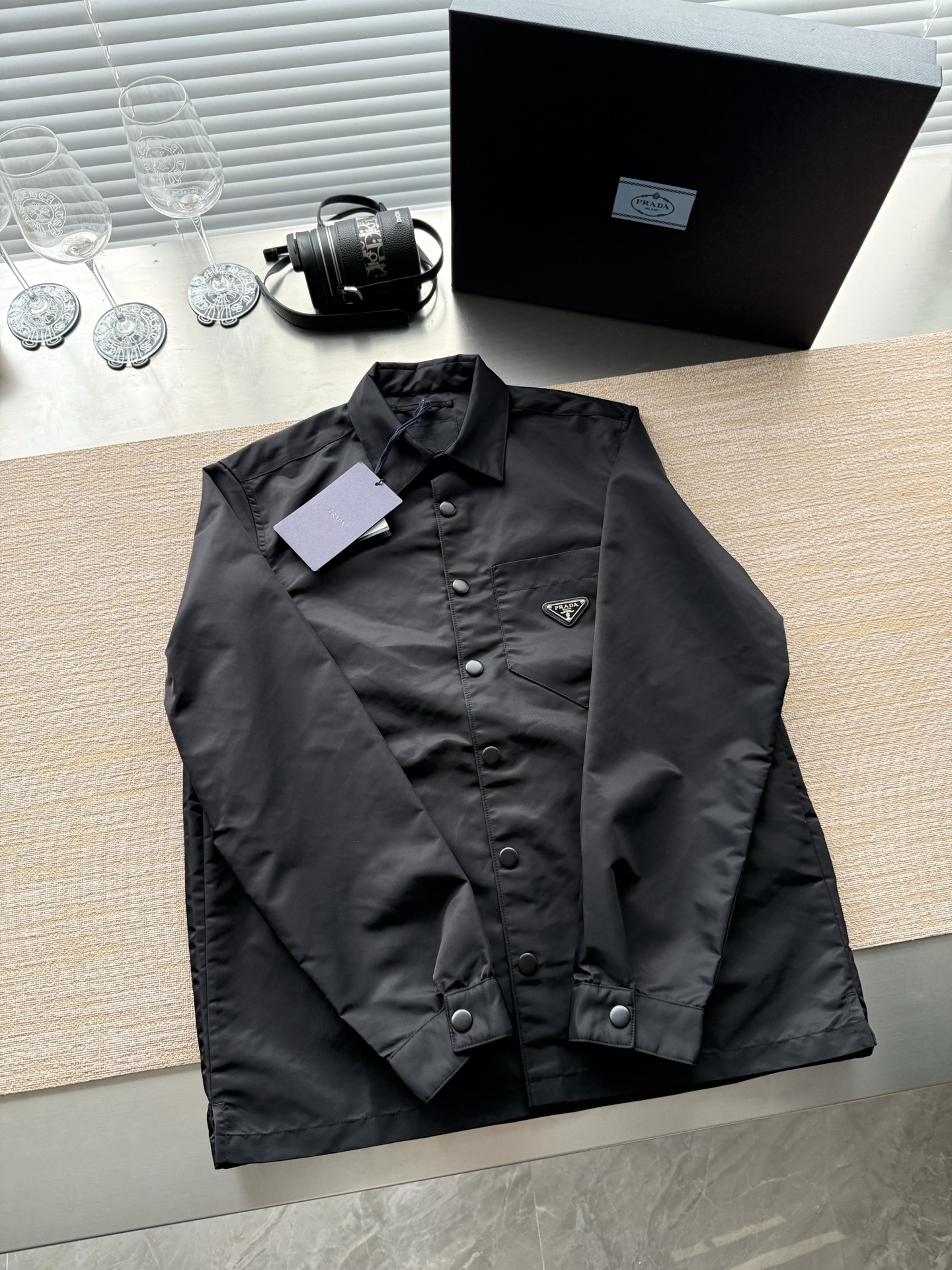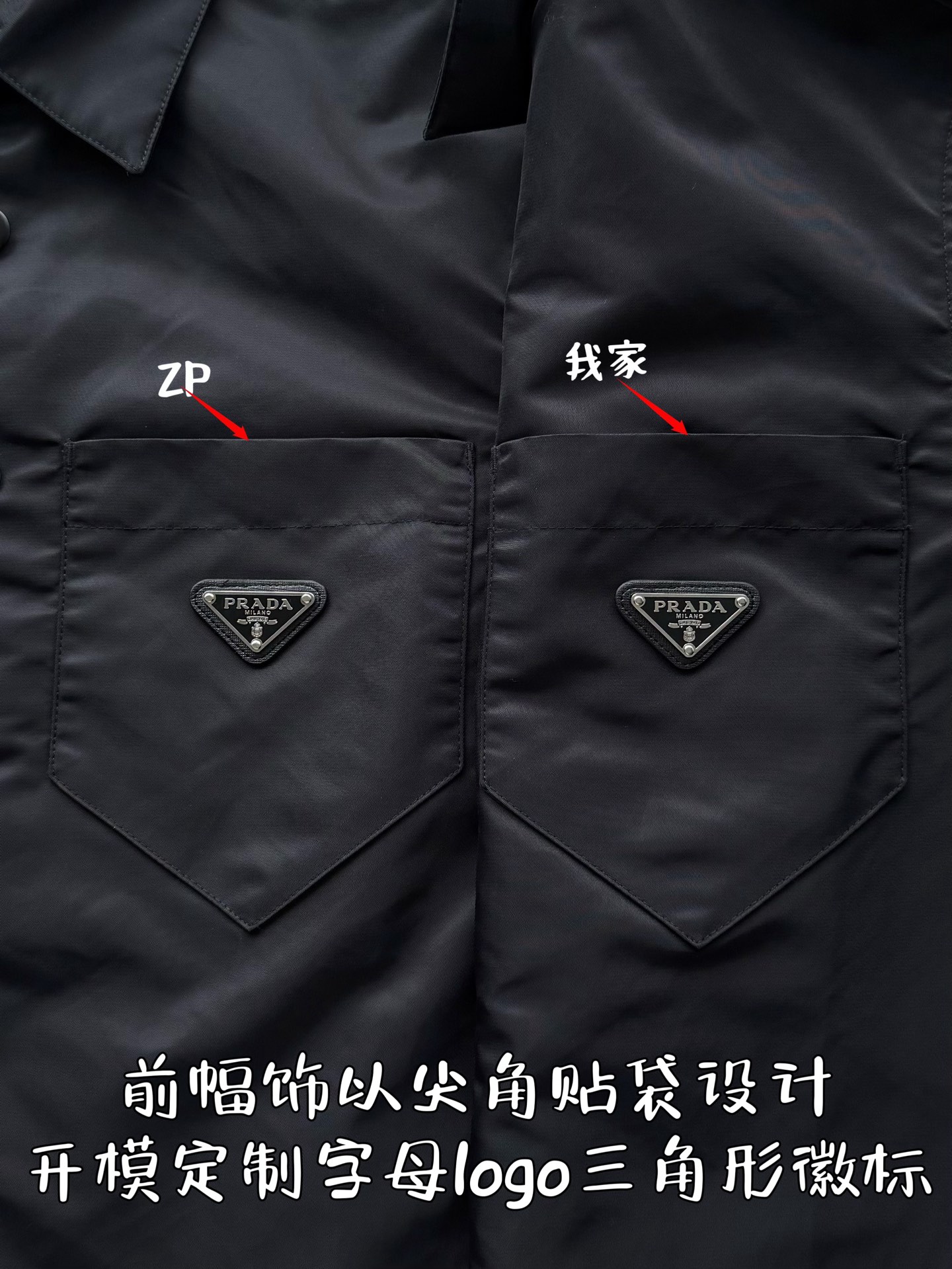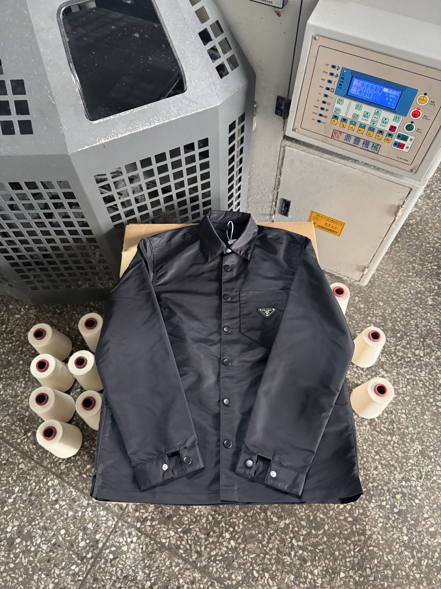 PRADA25FW三角标再生尼龙长袖衬衫‼️整件衣服13100购买ZP拆解打造,定制黑色再生尼龙面料,胸前贴袋设计,饰以三角标字母标识徽章,门襟 袖口开模定制纯色电镀五金纽扣,真正做到1:1copy 闭眼入 码数:S M L XL