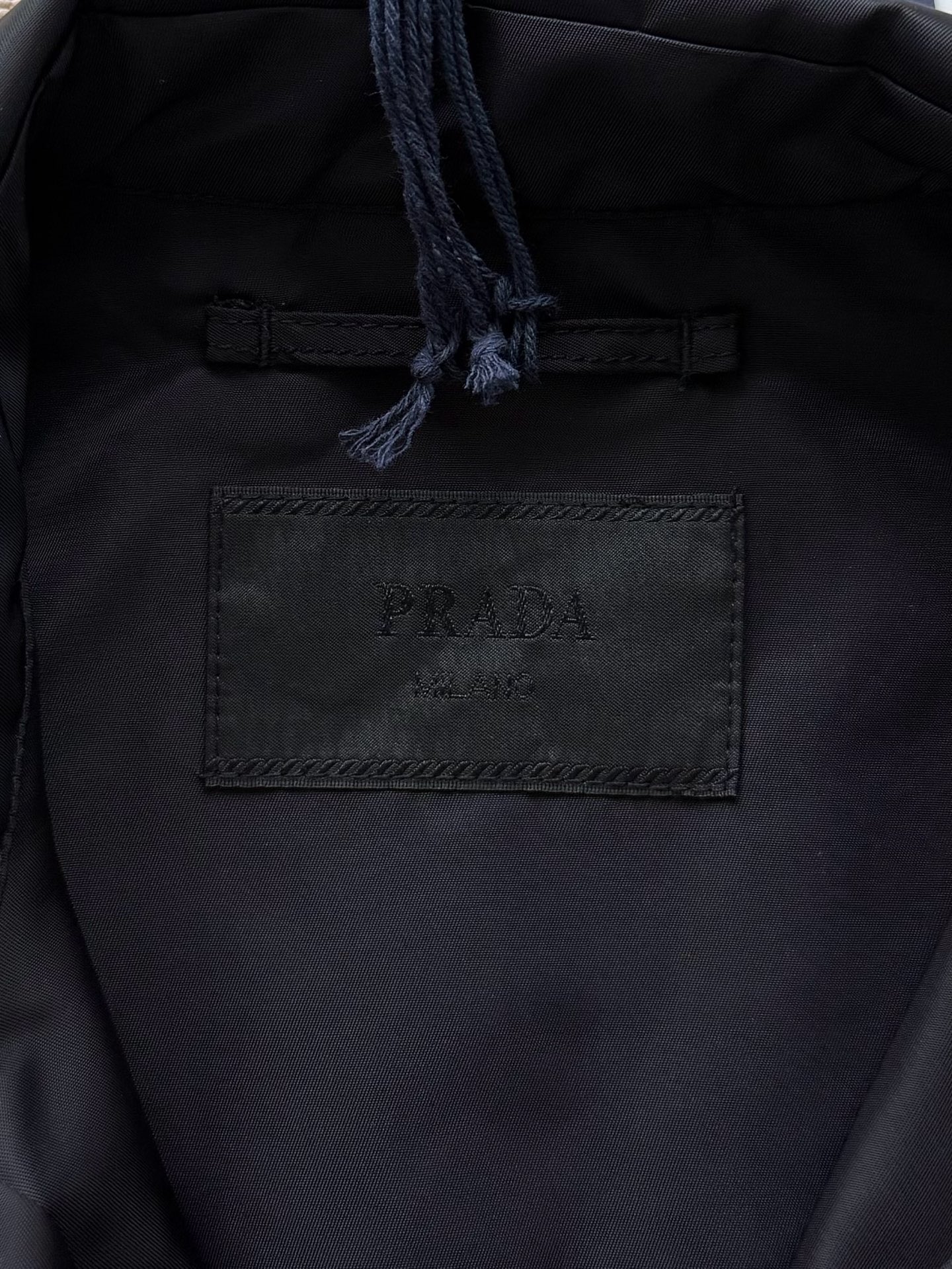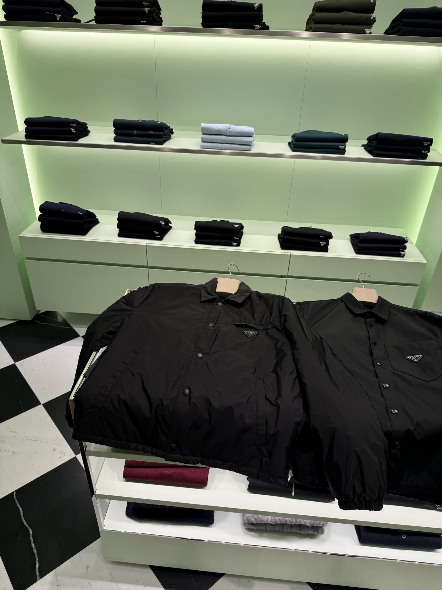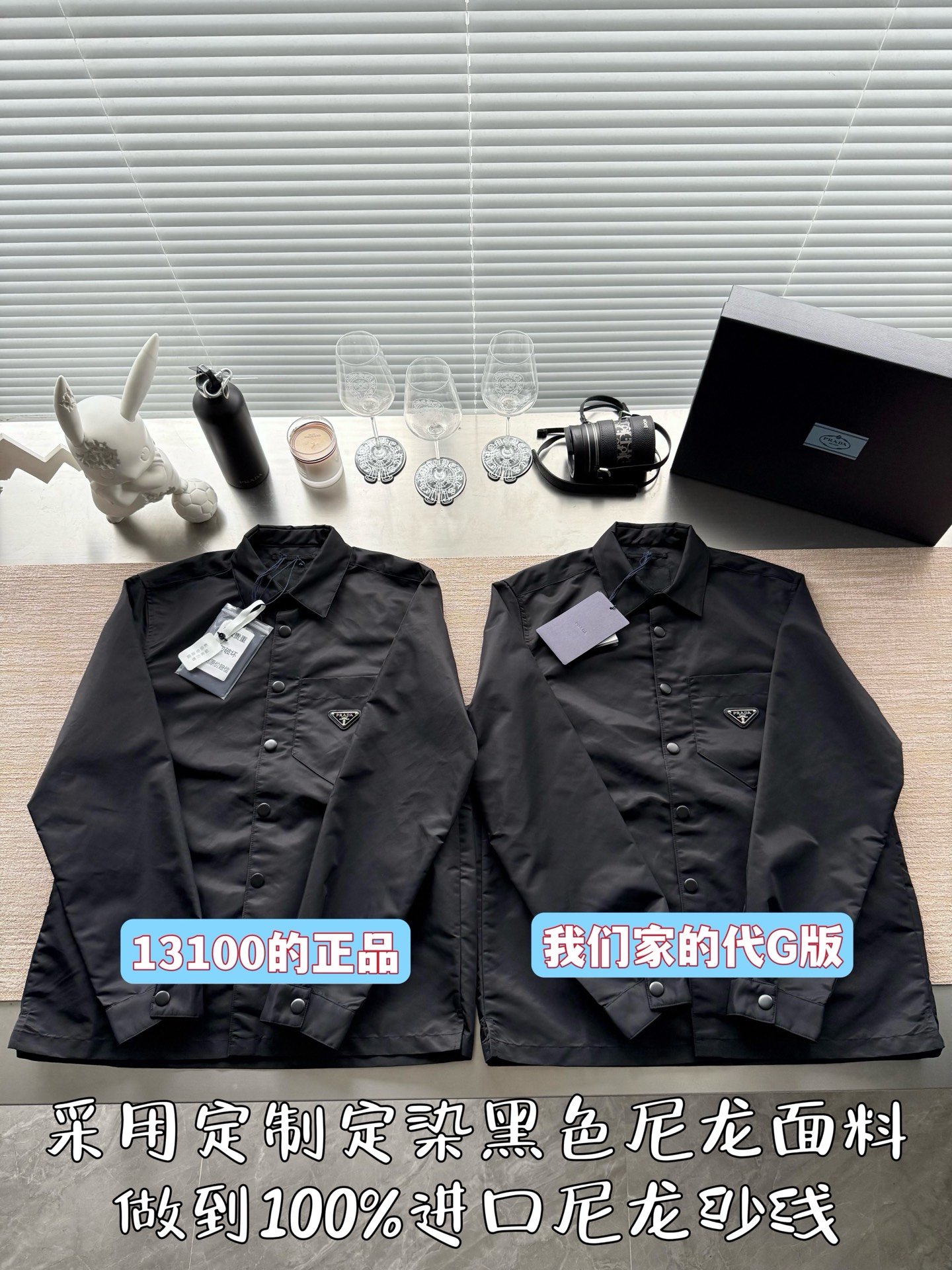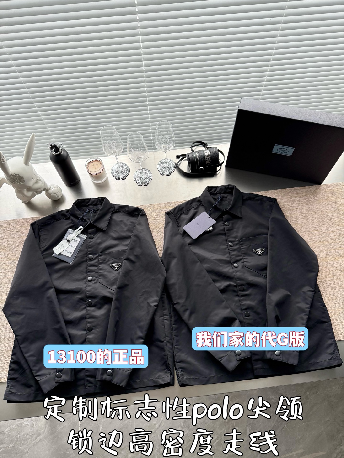 PRADA25FW三角标再生尼龙长袖衬衫‼️整件衣服13100购买ZP拆解打造,定制黑色再生尼龙面料,胸前贴袋设计,饰以三角标字母标识徽章,门襟 袖口开模定制纯色电镀五金纽扣,真正做到1:1copy 闭眼入 码数:S M L XL