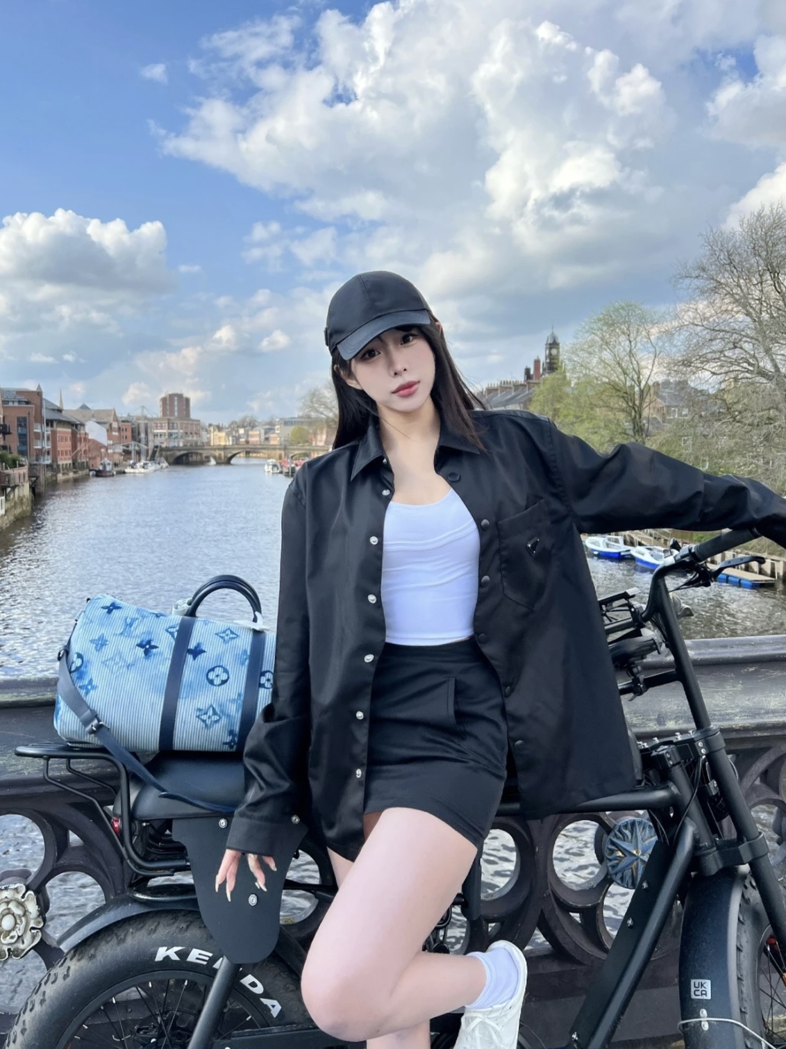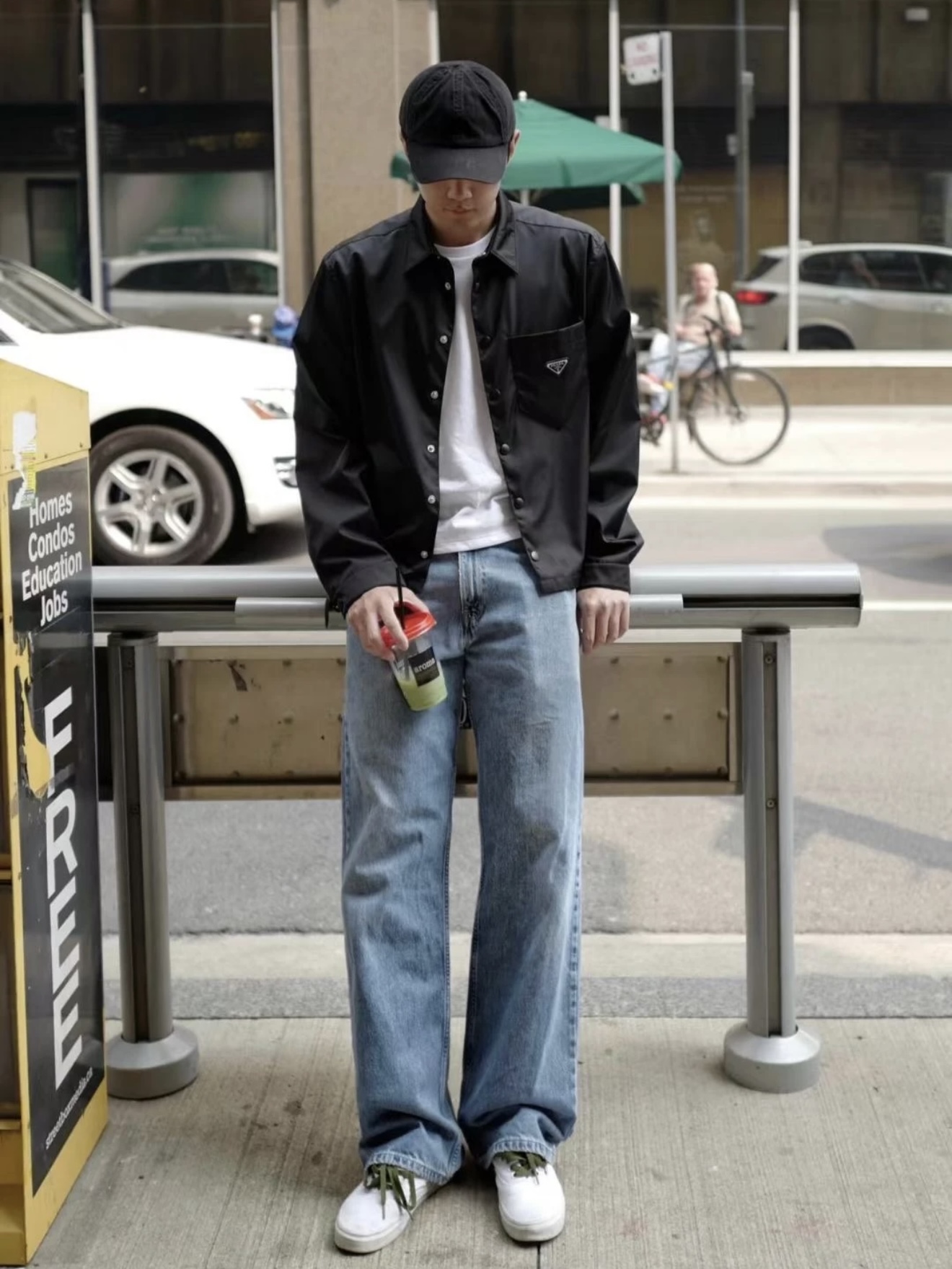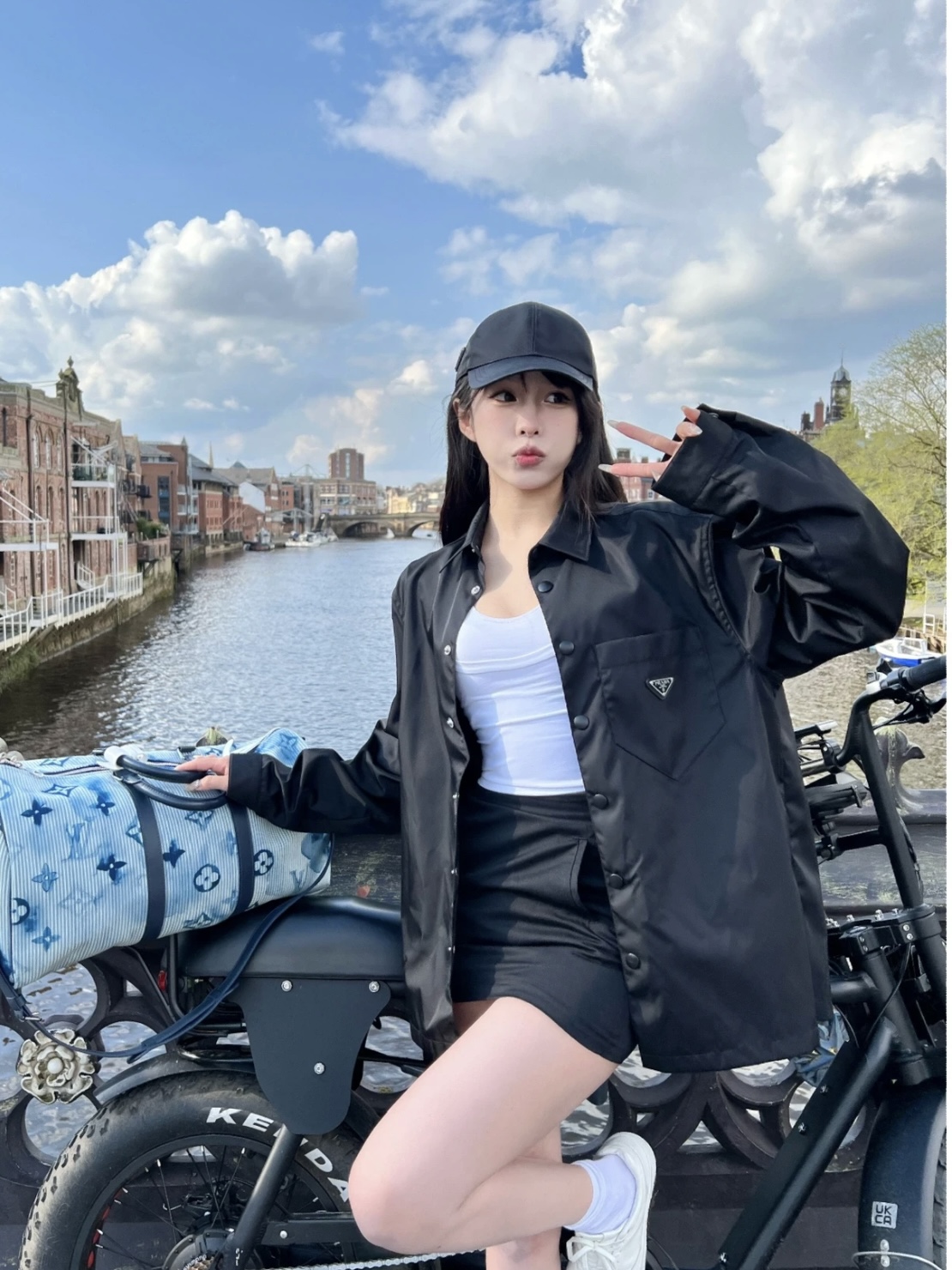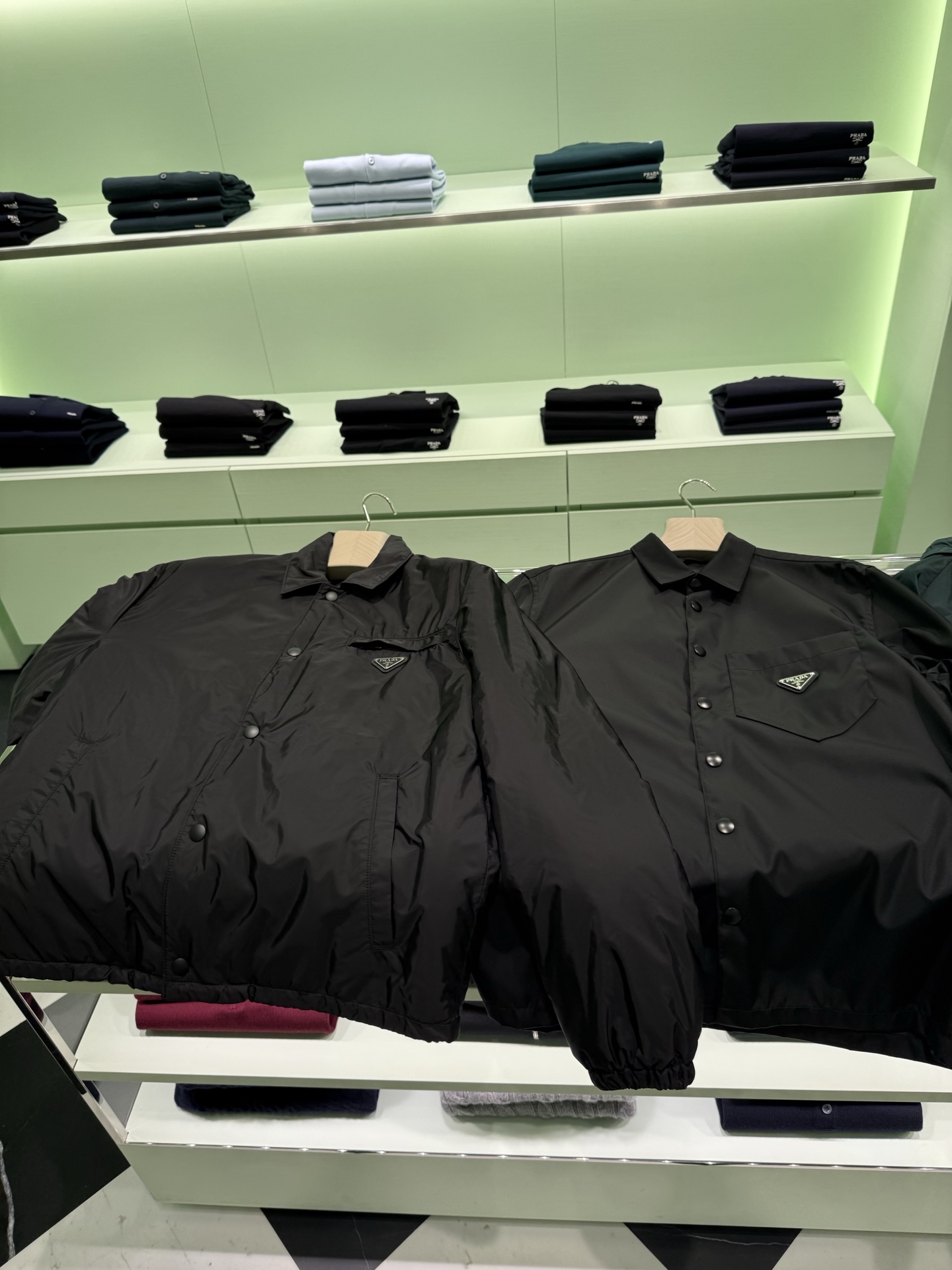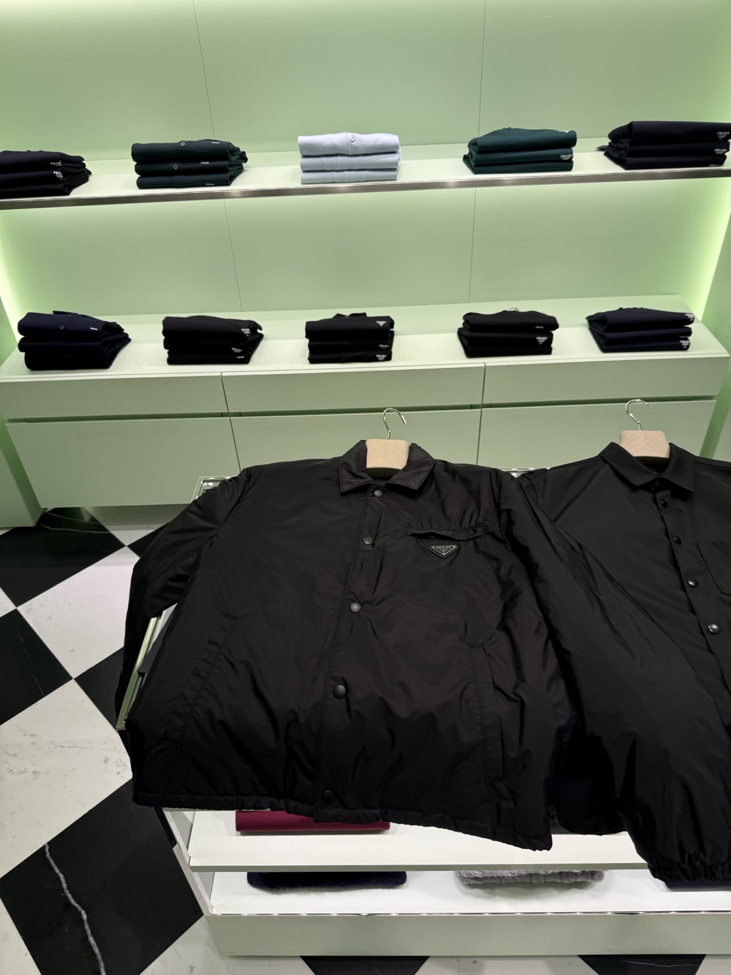 PRADA25FW三角标再生尼龙长袖衬衫‼️整件衣服13100购买ZP拆解打造,定制黑色再生尼龙面料,胸前贴袋设计,饰以三角标字母标识徽章,门襟 袖口开模定制纯色电镀五金纽扣,真正做到1:1copy 闭眼入 码数:S M L XL
