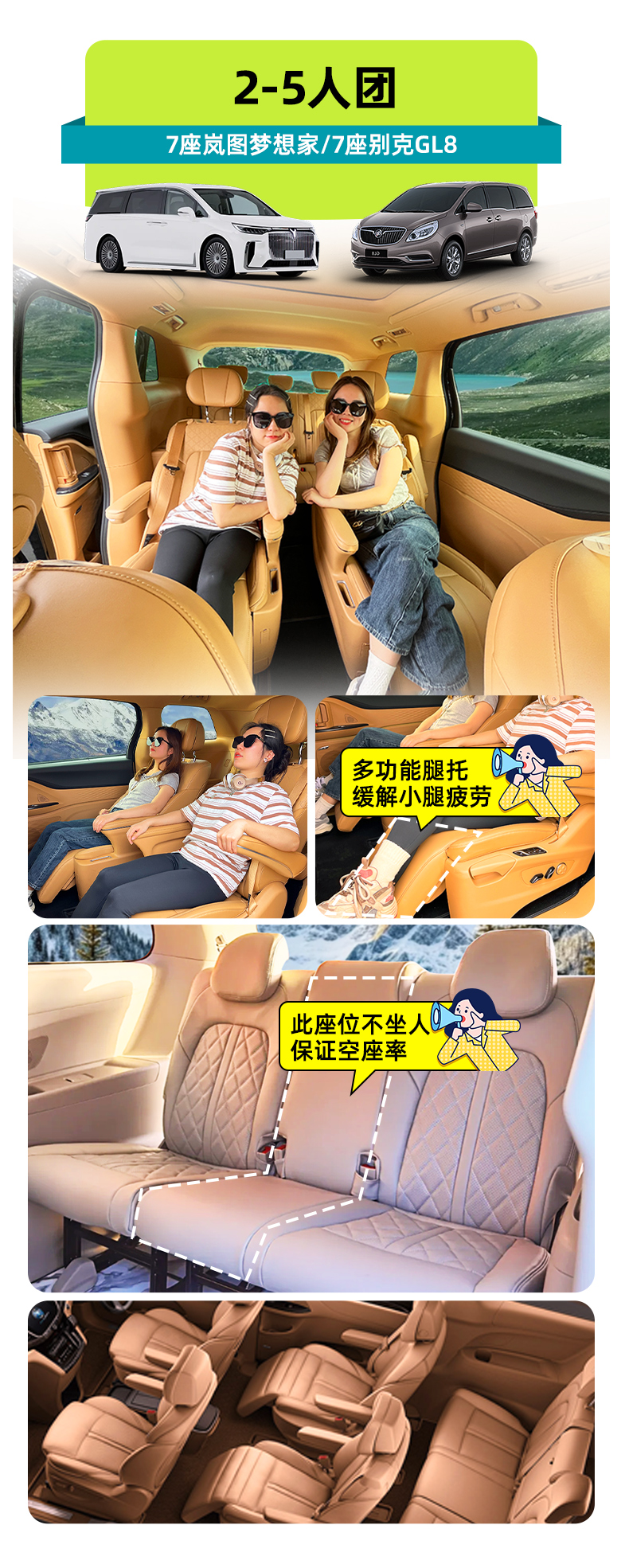 2-5人团:安排7座岚图梦想家或7座别克GL8(保证空座率)