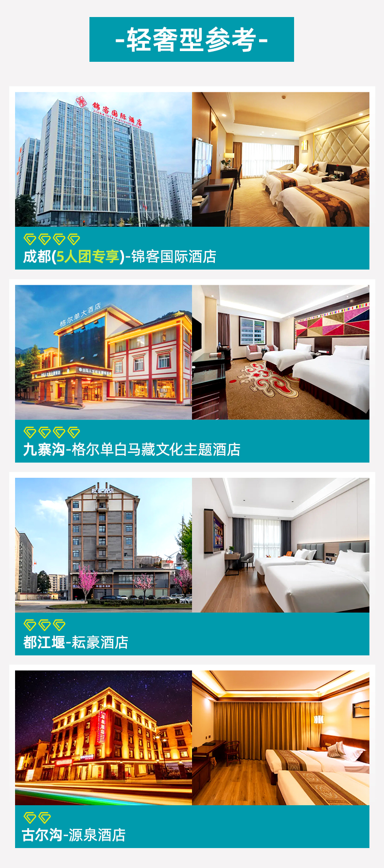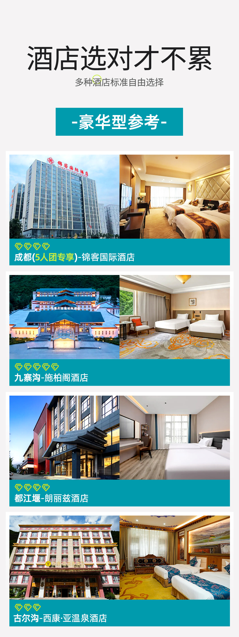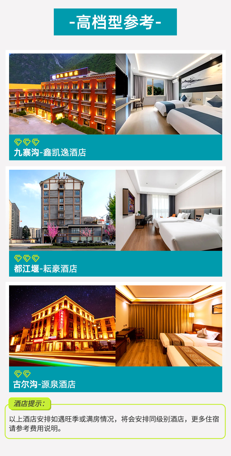 注:酒店套餐命名仅以九寨沟住宿为准,非实际酒店等级,望悉知。