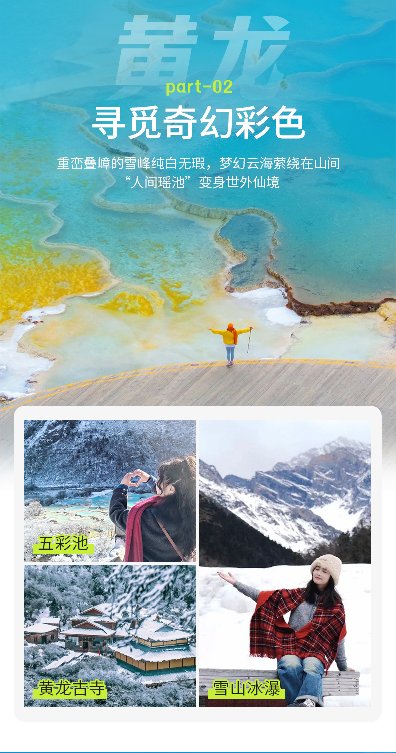 注: 旺季会存在门票紧张的情况,旺季出行报名时九寨、黄龙、需提前买票。