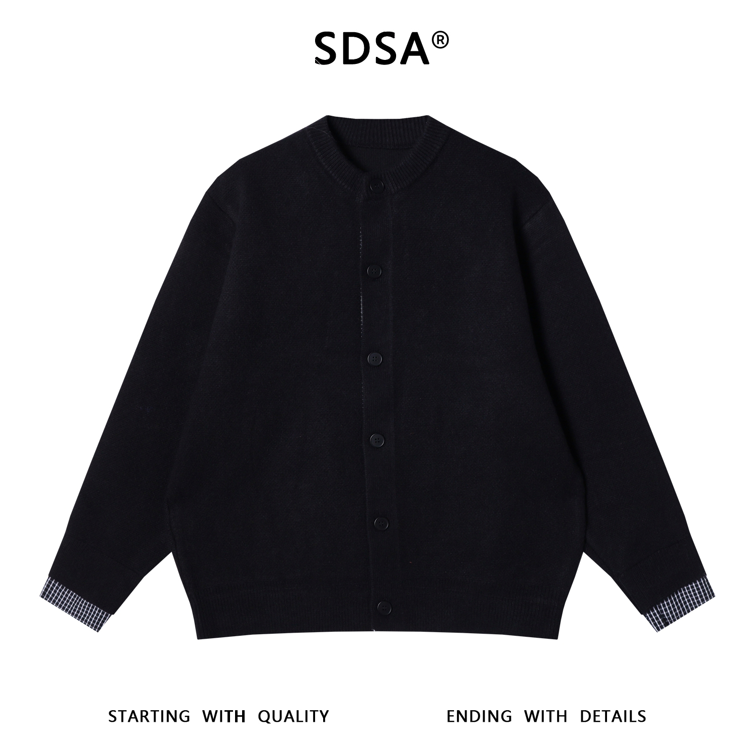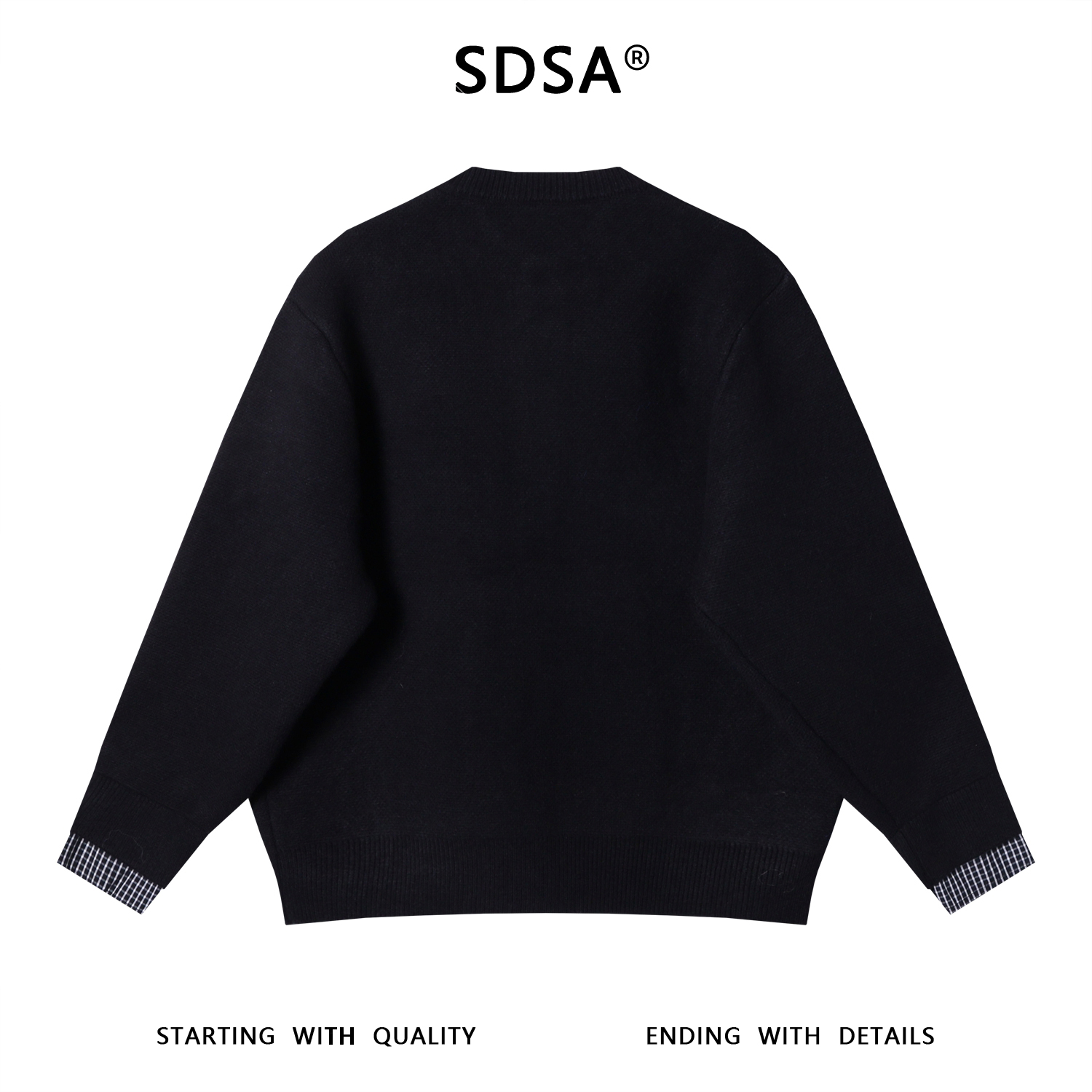 SDSA男士秋冬新款痞帅男装美式拼接纽扣圆领针织衫休闲慵懒风毛衣