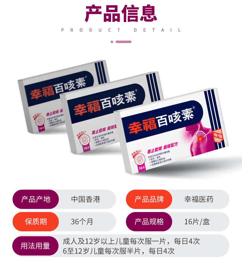 【香港直邮】专止干咳痕咳 正品幸福百咳素(16粒装)