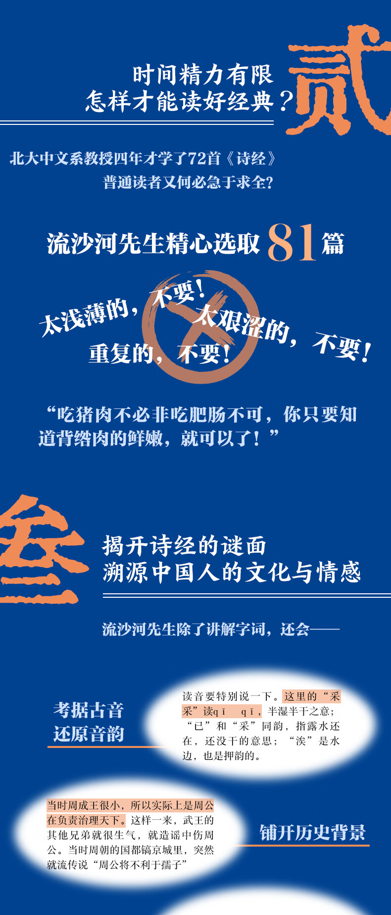 本书在修订的过程中,增加了历代诗评的部分,选取方玉润、王夫之、闻一多等人的,与流沙河的讲解相互映衬。增加了93幅插图,包括细井徇《诗经名物图解》的图片和中国古画,诗、画、评一体,全方位理解诗歌内容。增加了生僻字注音和地名标注,无障碍阅读。