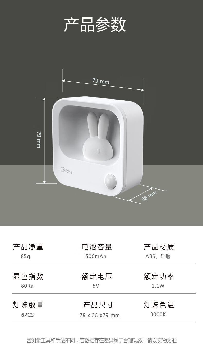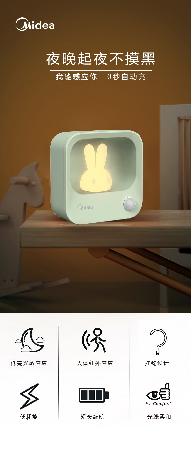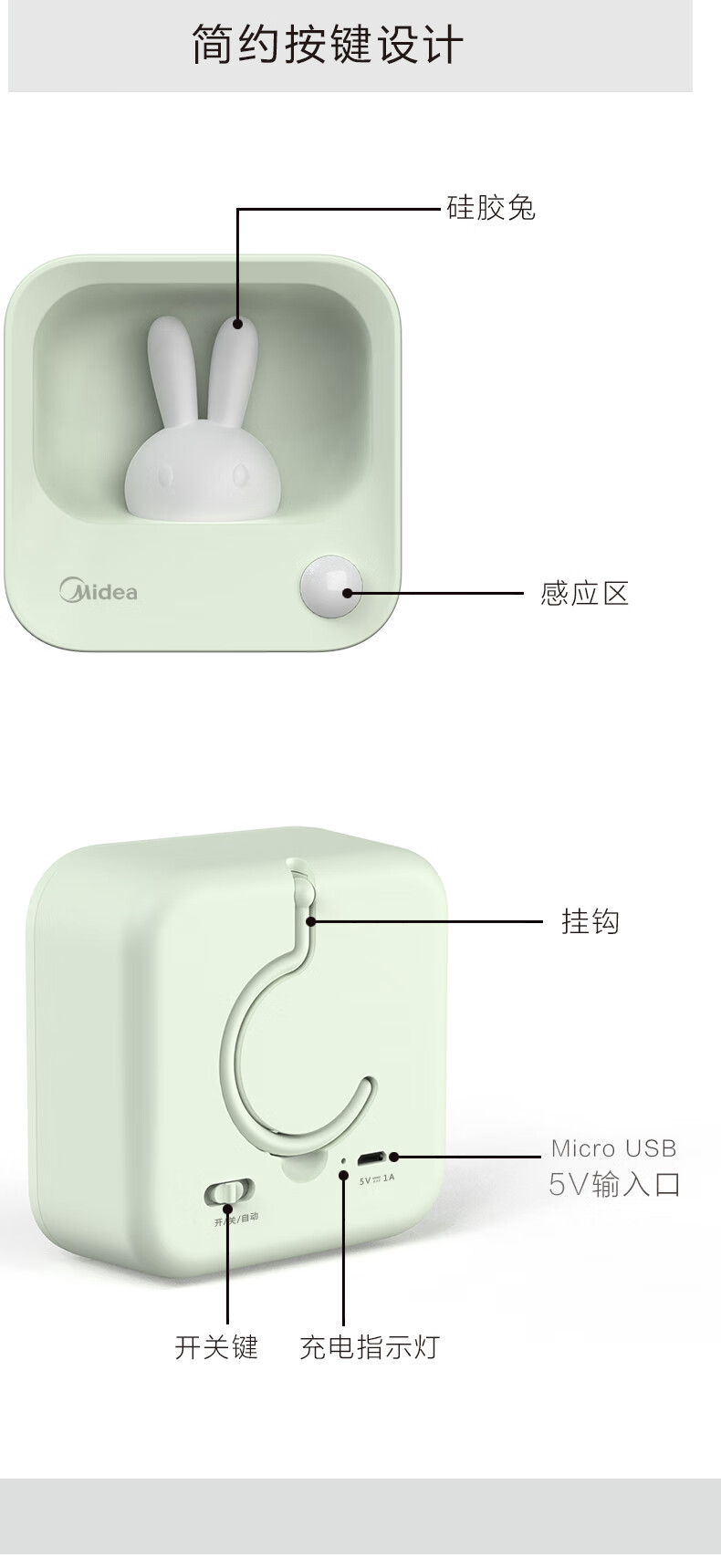 美的(Midea)美的抹茶绿灵帅台灯夜灯美小兔/雅轩台灯/夹子灯 美小兔MTD1.1-M/K-01 小夜灯
