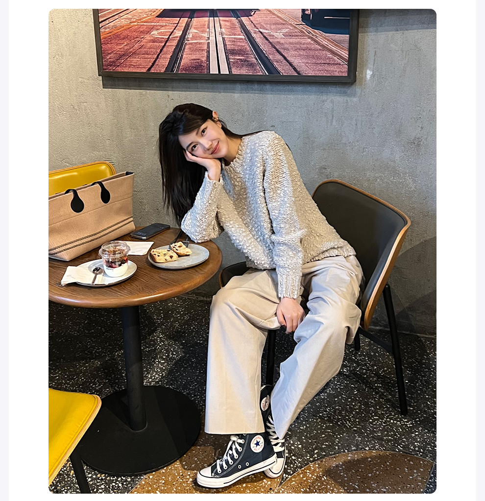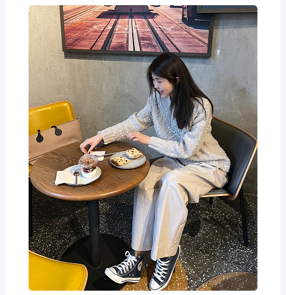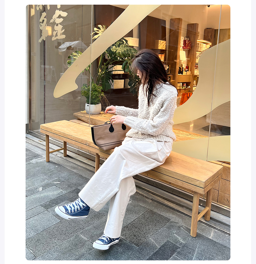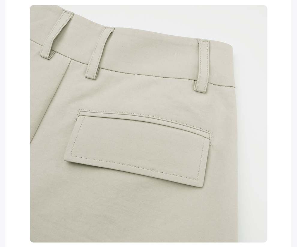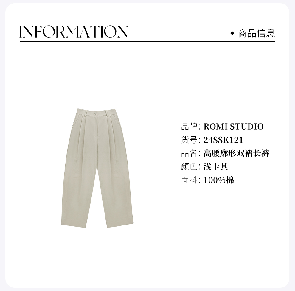 ROMI STUDIO高密双层全棉布亲肤高腰廓形双褶浅卡其长裤 24SSK121