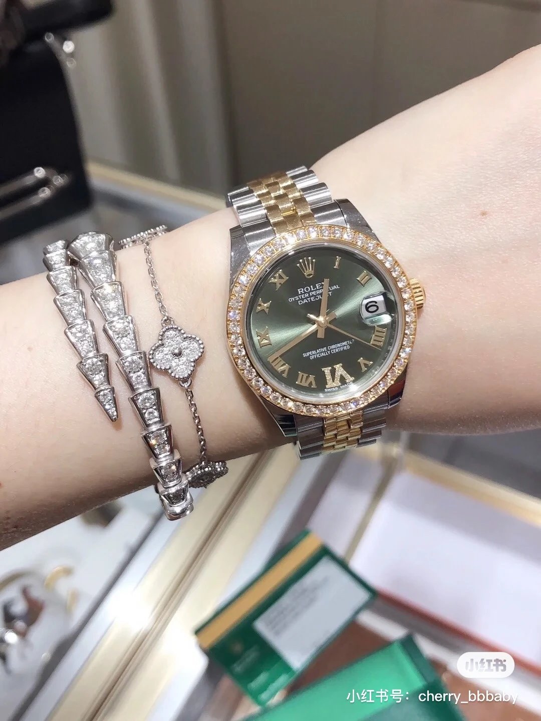 镜面具有耐磨性高蓝宝石材料制造,3点钟位置装有小窗凸透镜(2.5倍)女装日志型的防水蚝式表壳给予高精准机芯Z佳防护!