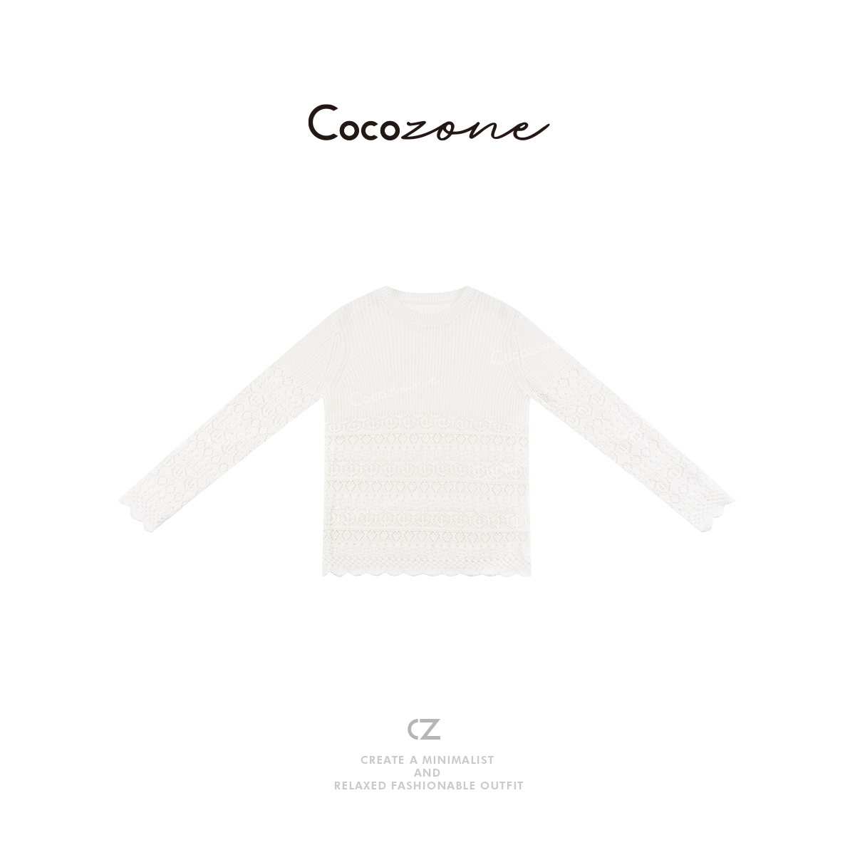 COCO ZONE 2025早春设计感镂空钩花小众针织衫CD2A0448