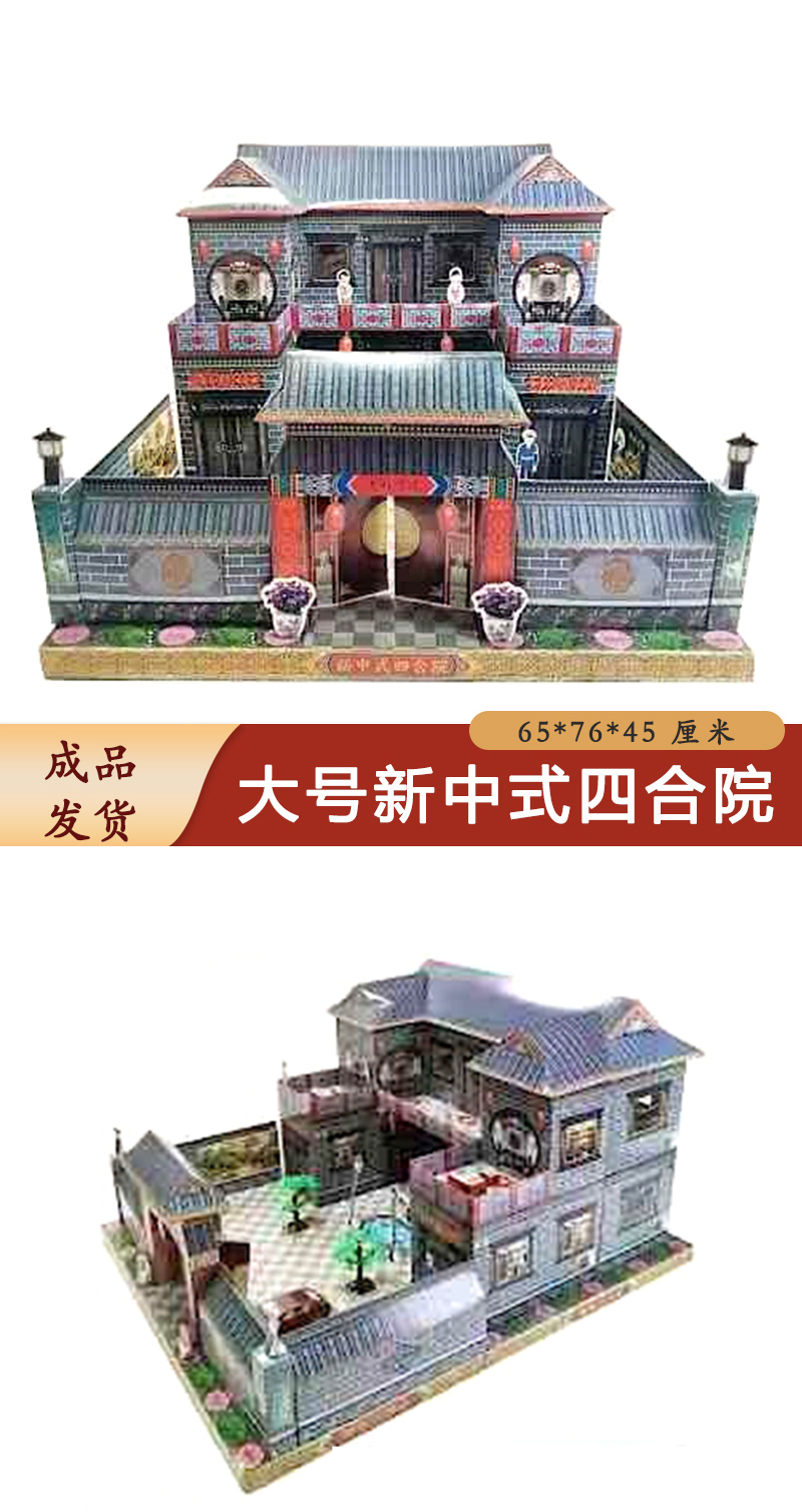 大号新中式四合院纸房子纸扎祭祀用品立体家具纸活