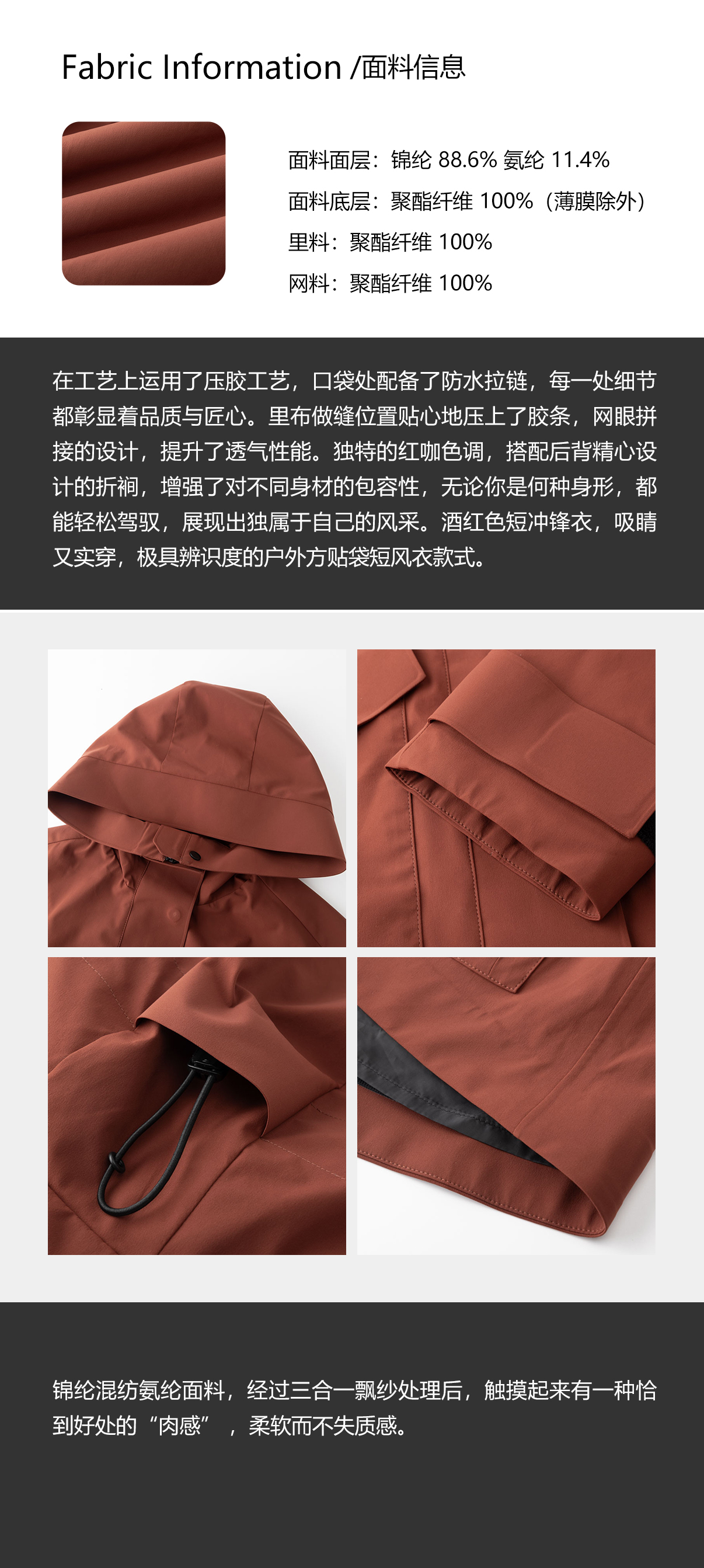 COCO ZONE 刘一一“恩和户外” 连帽方贴袋短风衣外套 CD2A1493