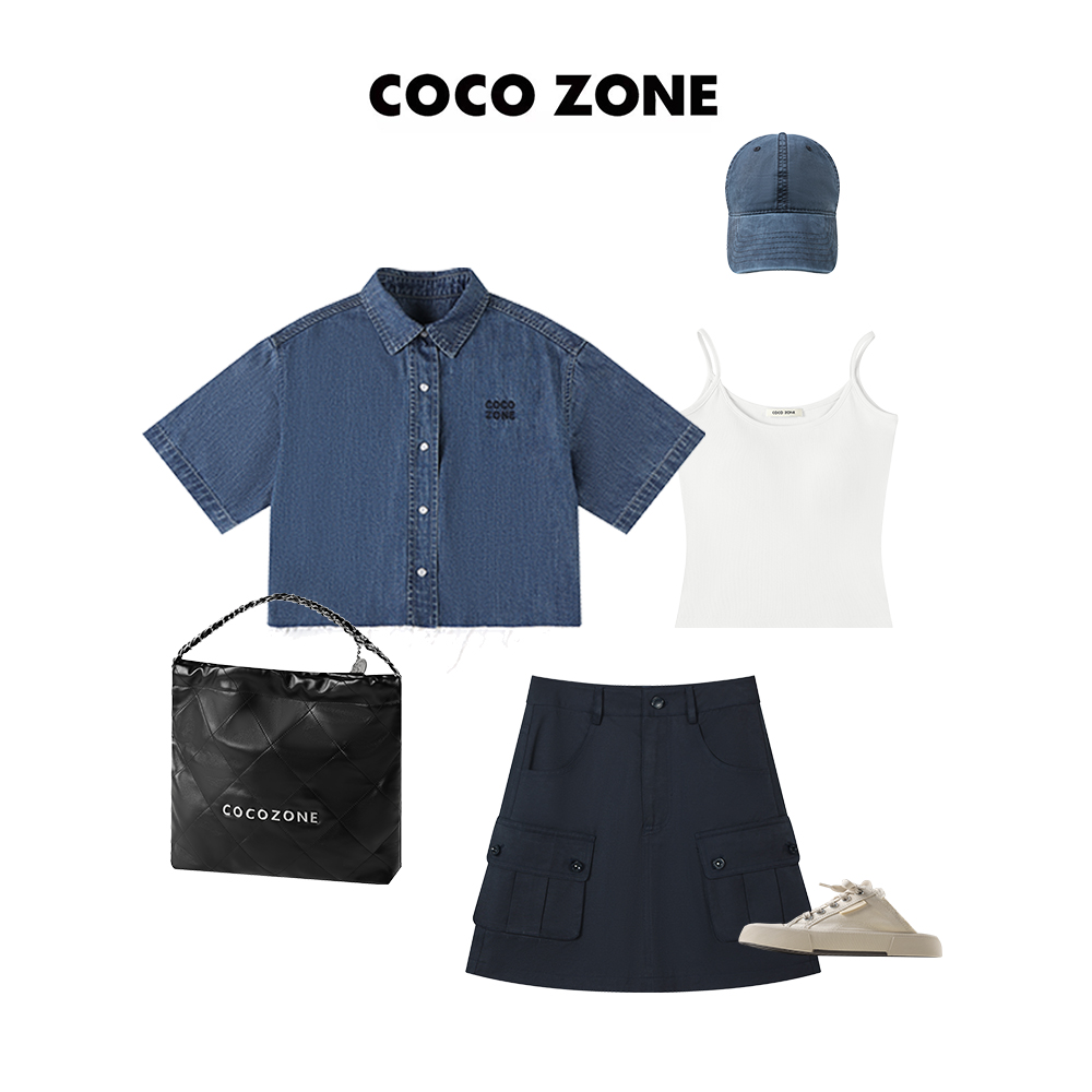COCO ZONE 短款POLO领衬衣毛边下摆绣花短袖外套 23C18852