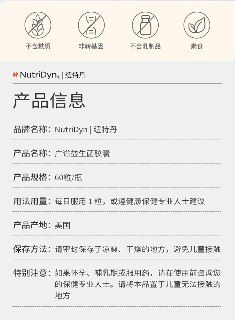 【效期至26年10月】广谱益生菌胶囊 NutriDyn UltraBiotic Complete 60粒/瓶