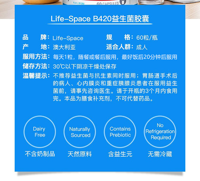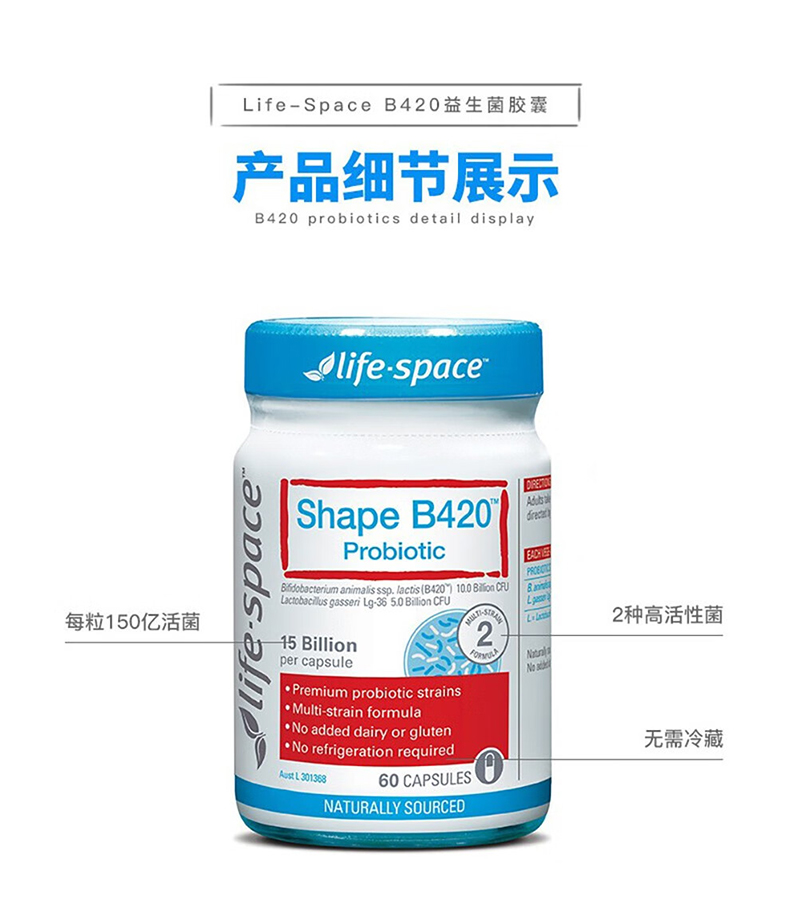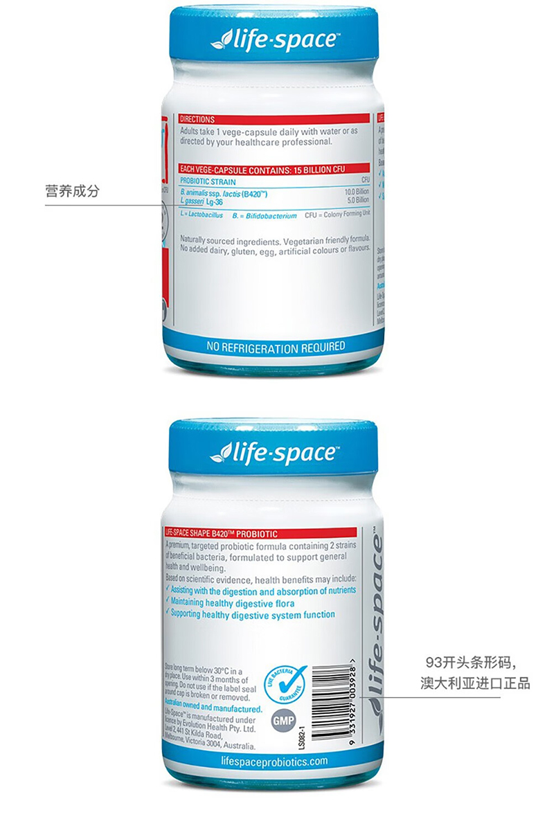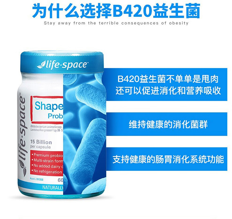 【包邮包税】LifeSpace塑身B420益生菌60粒