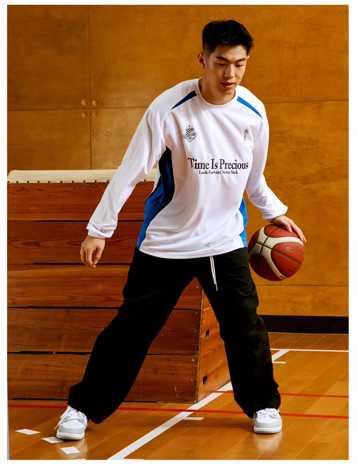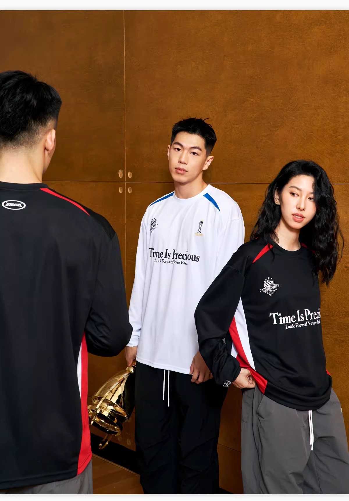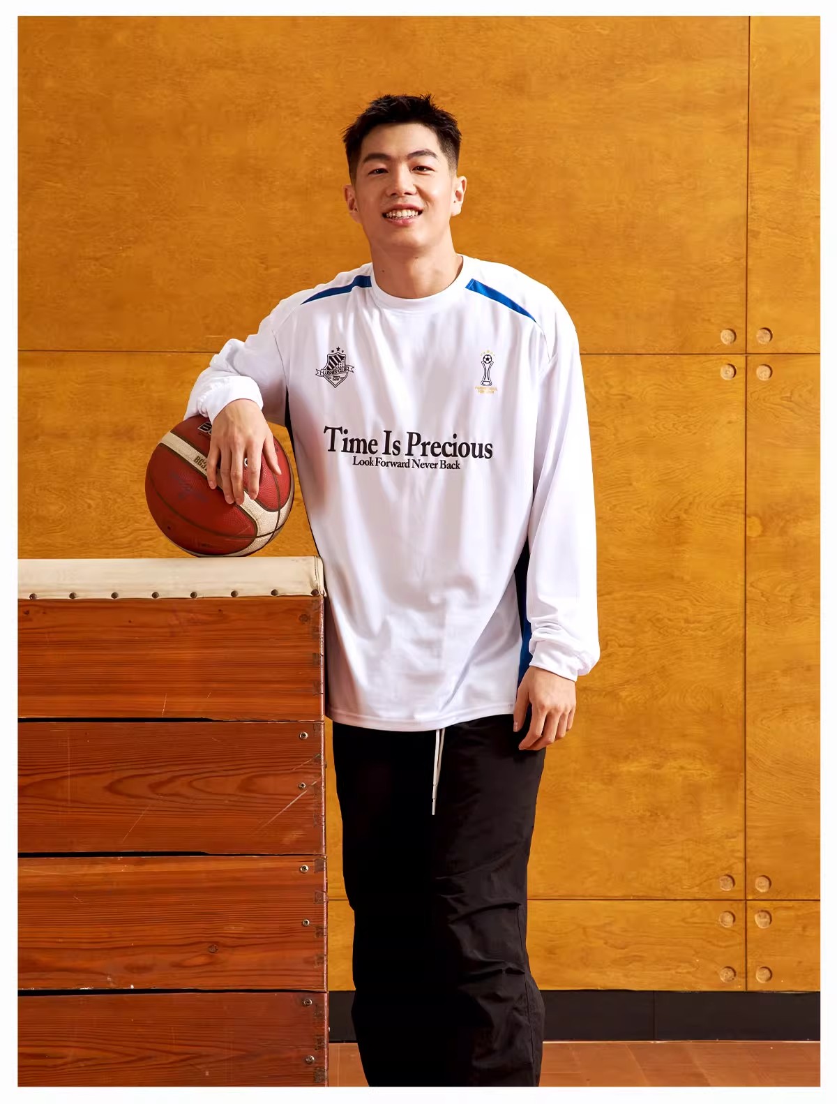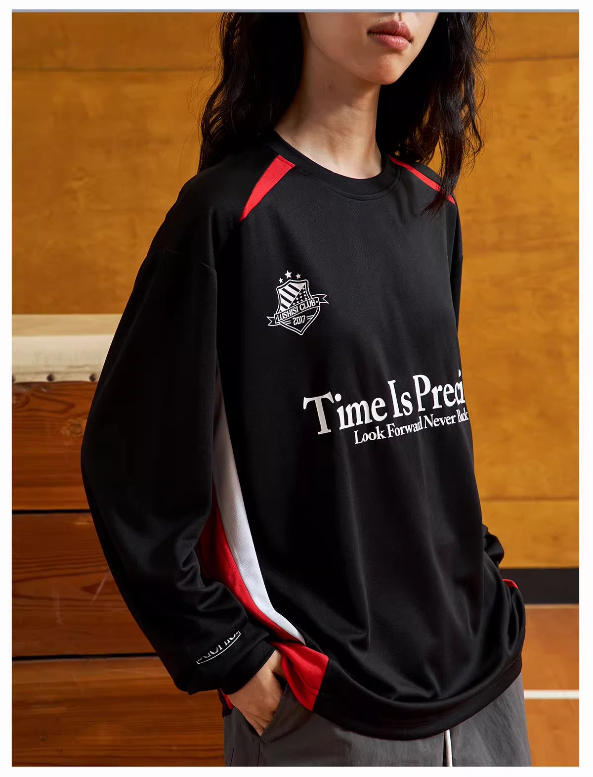 LUSHISI「速干吸湿」时间可贵主题拼色字母印花长袖运动风凉感t恤
