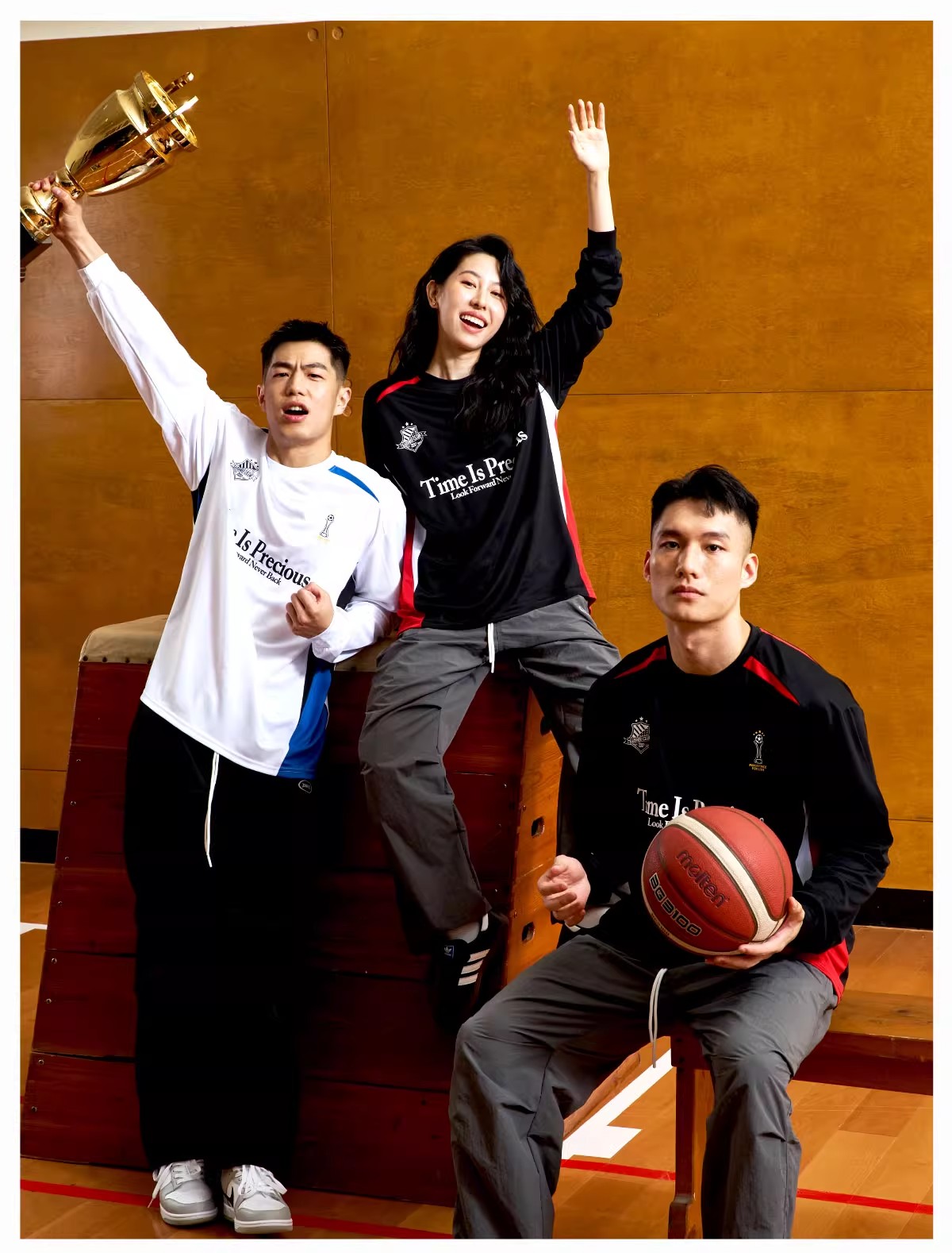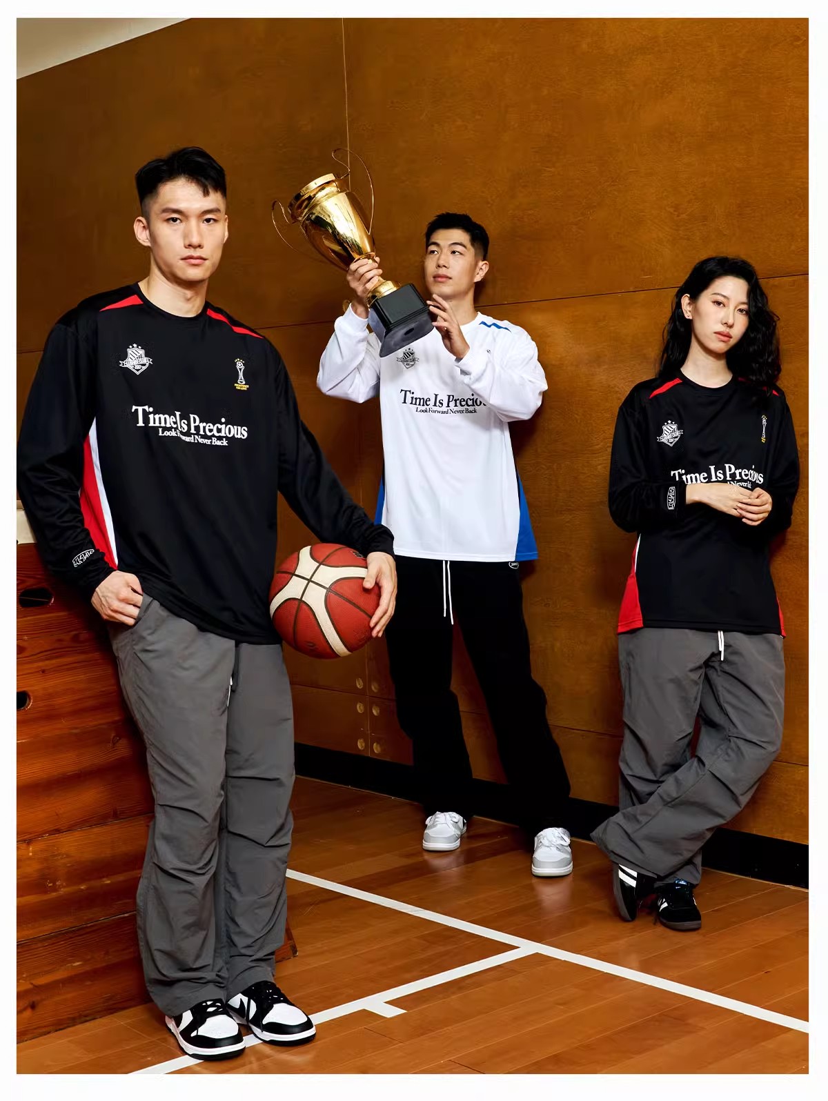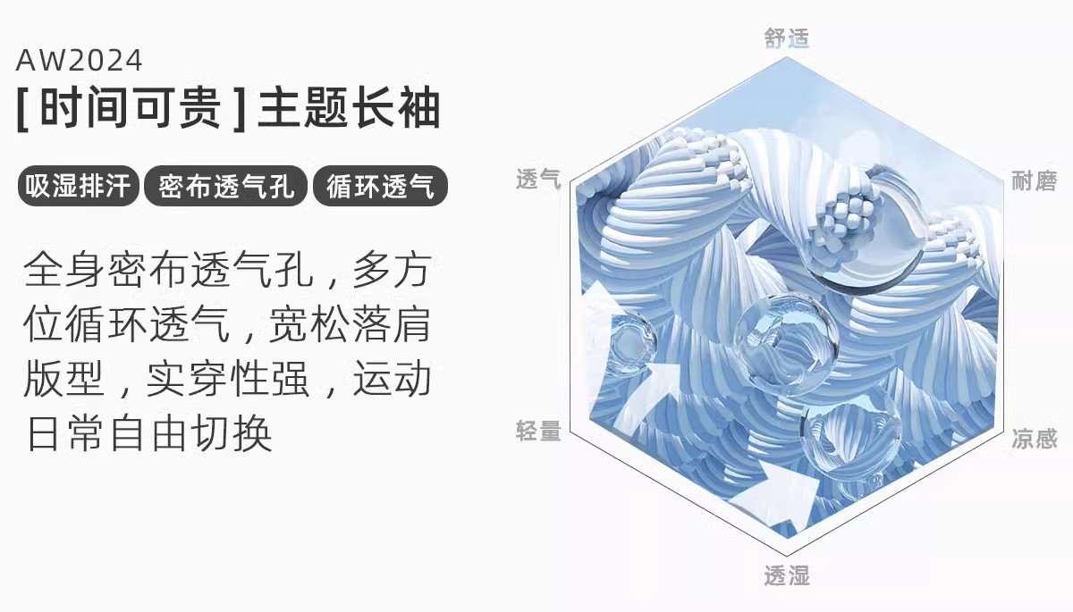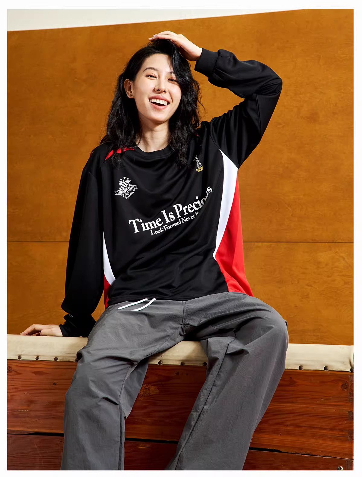 LUSHISI「速干吸湿」时间可贵主题拼色字母印花长袖运动风凉感t恤