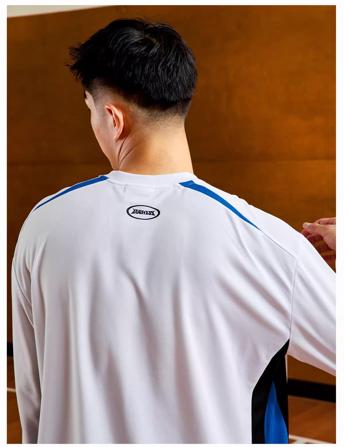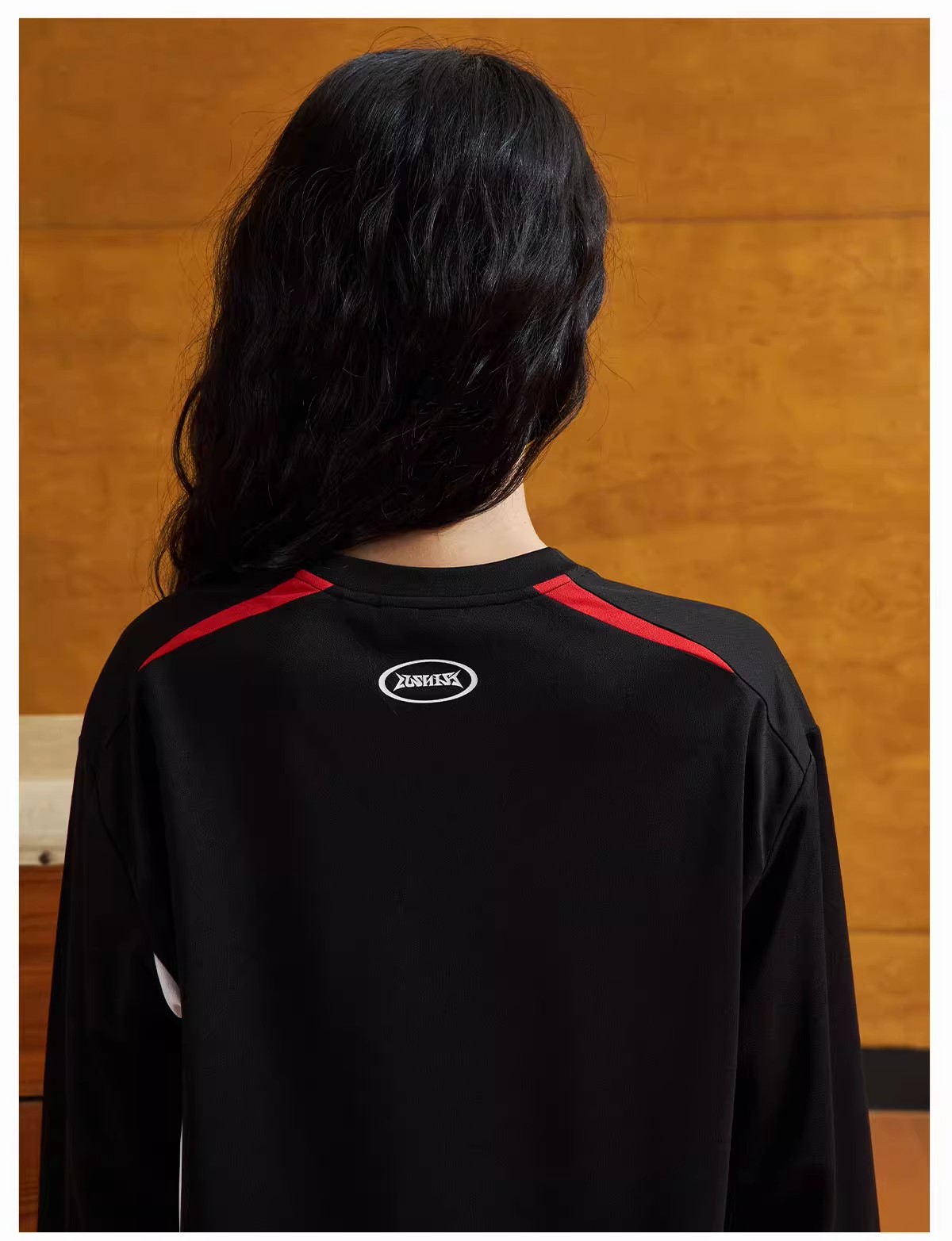 LUSHISI拼色插肩长袖炽热如火主题微弹速干运动长袖t恤投篮训练服