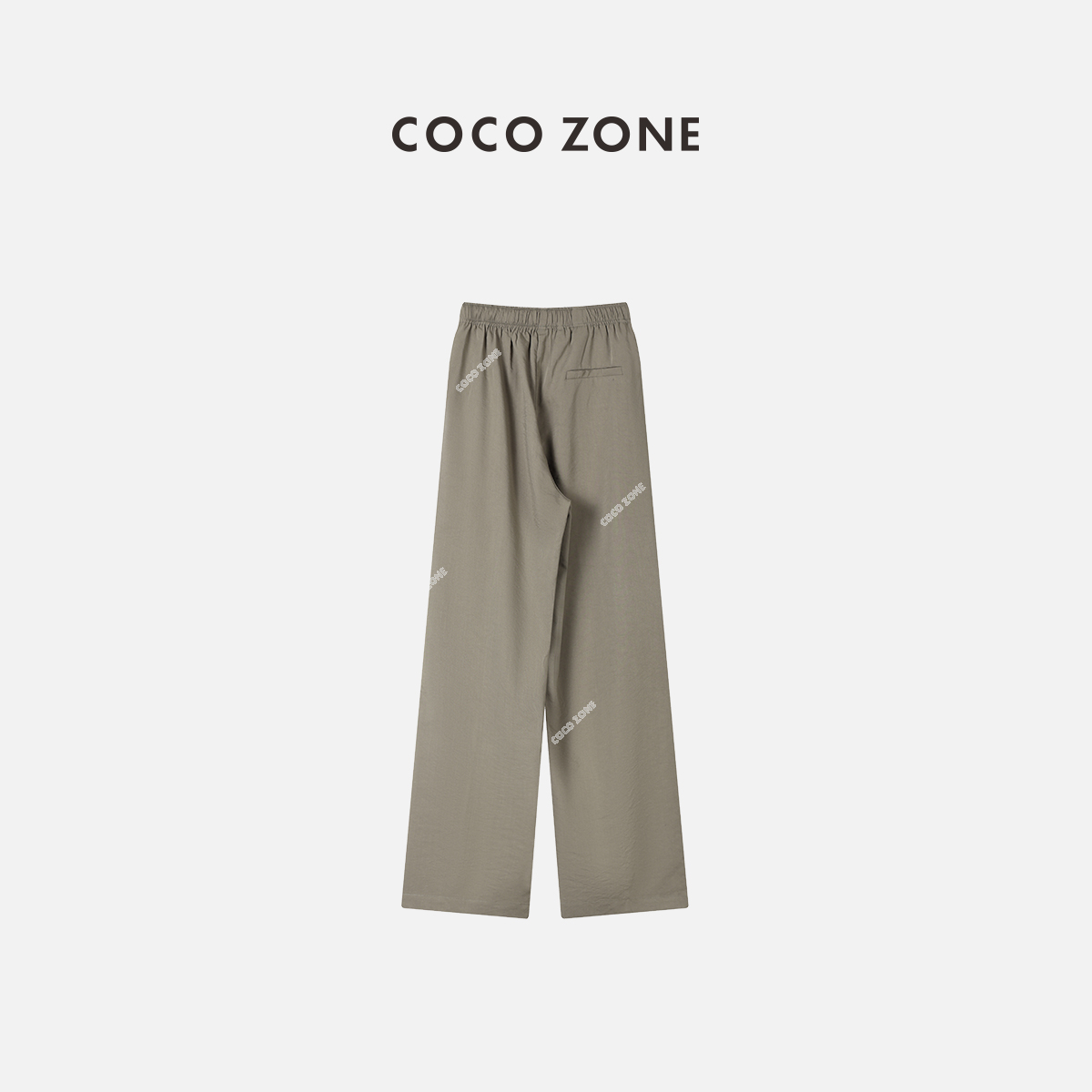 COCO ZONE 新款女士休闲长裤侧边夹标设计直筒裤 23C18451