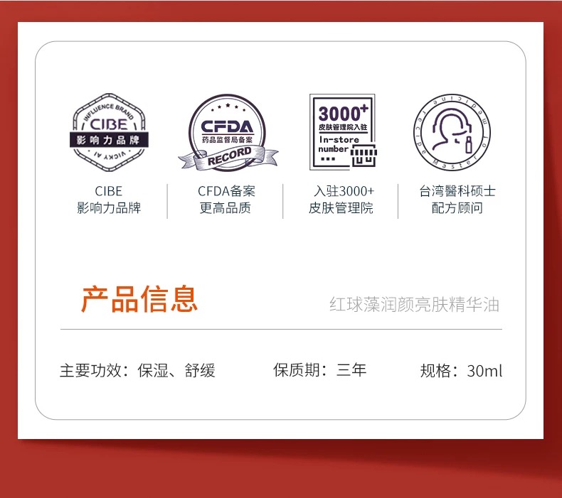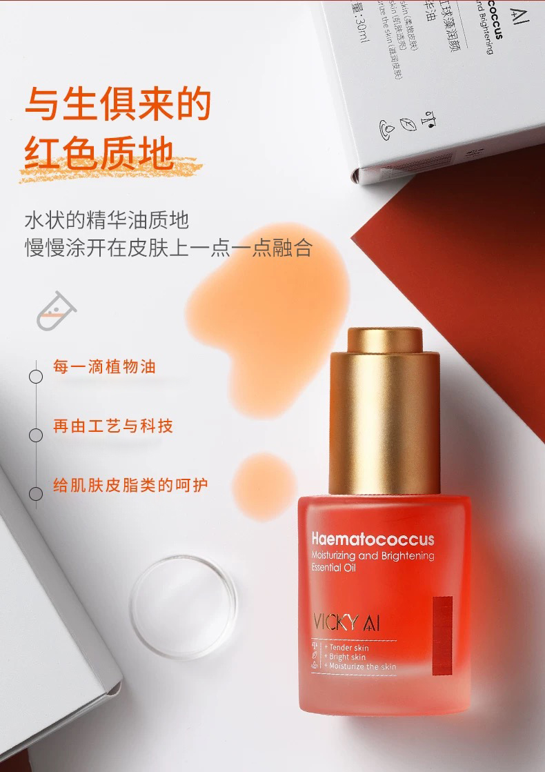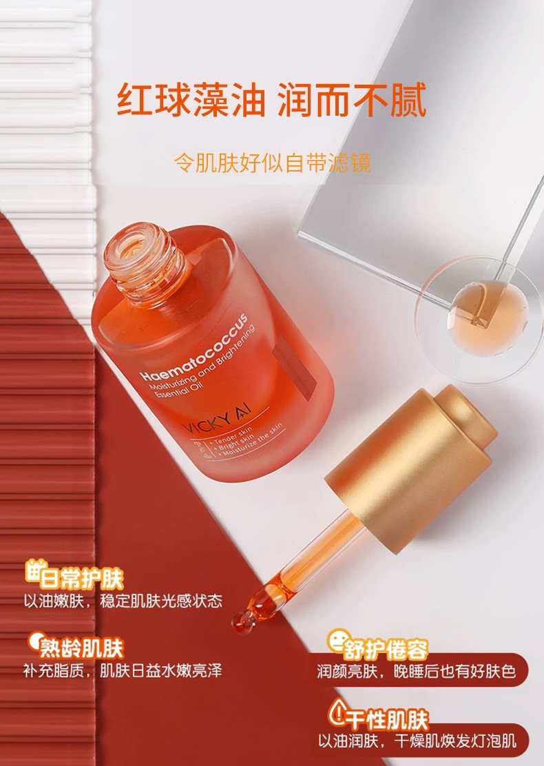 VICKY AI 艾薇希红球藻虾青素脸部精华液面部精华舒缓精华油