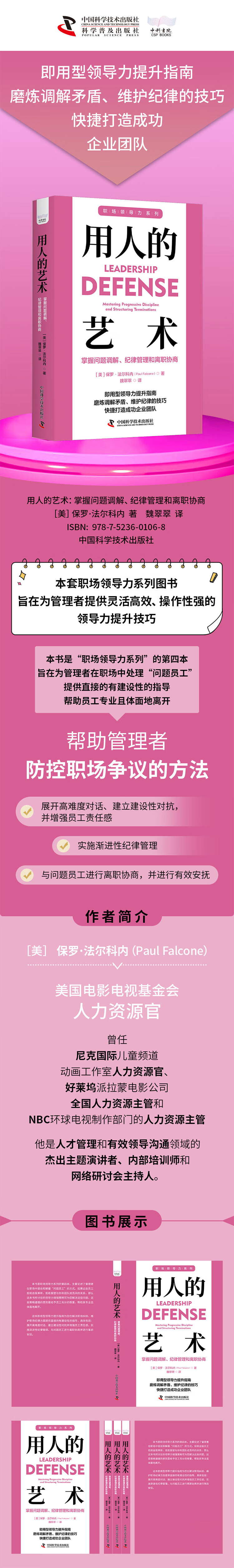 这本即用型领导力提升指南为您在解决职场纠纷、维护职场纪律方面提供直接的有建设性的指导,具体包括:展开高难度对话、建立建设性对抗并增强员工责任感,实施渐进性纪律管理,与问题员工进行离职协商并进行有效安抚。