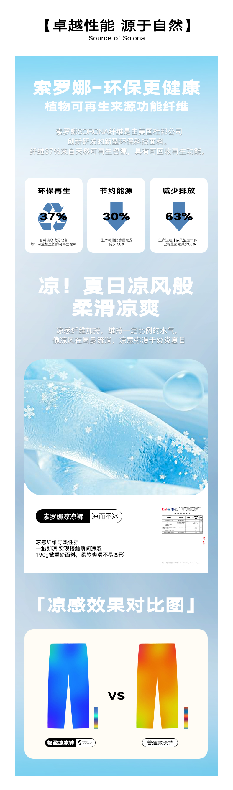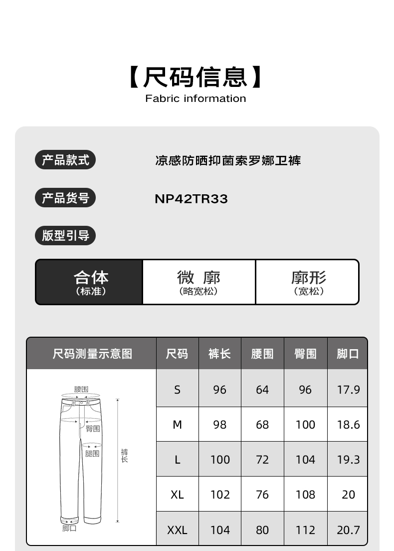 NPC潮牌索罗娜轻盈凉凉裤防晒抑菌松紧腰弹力休闲裤凉感NP42TR33