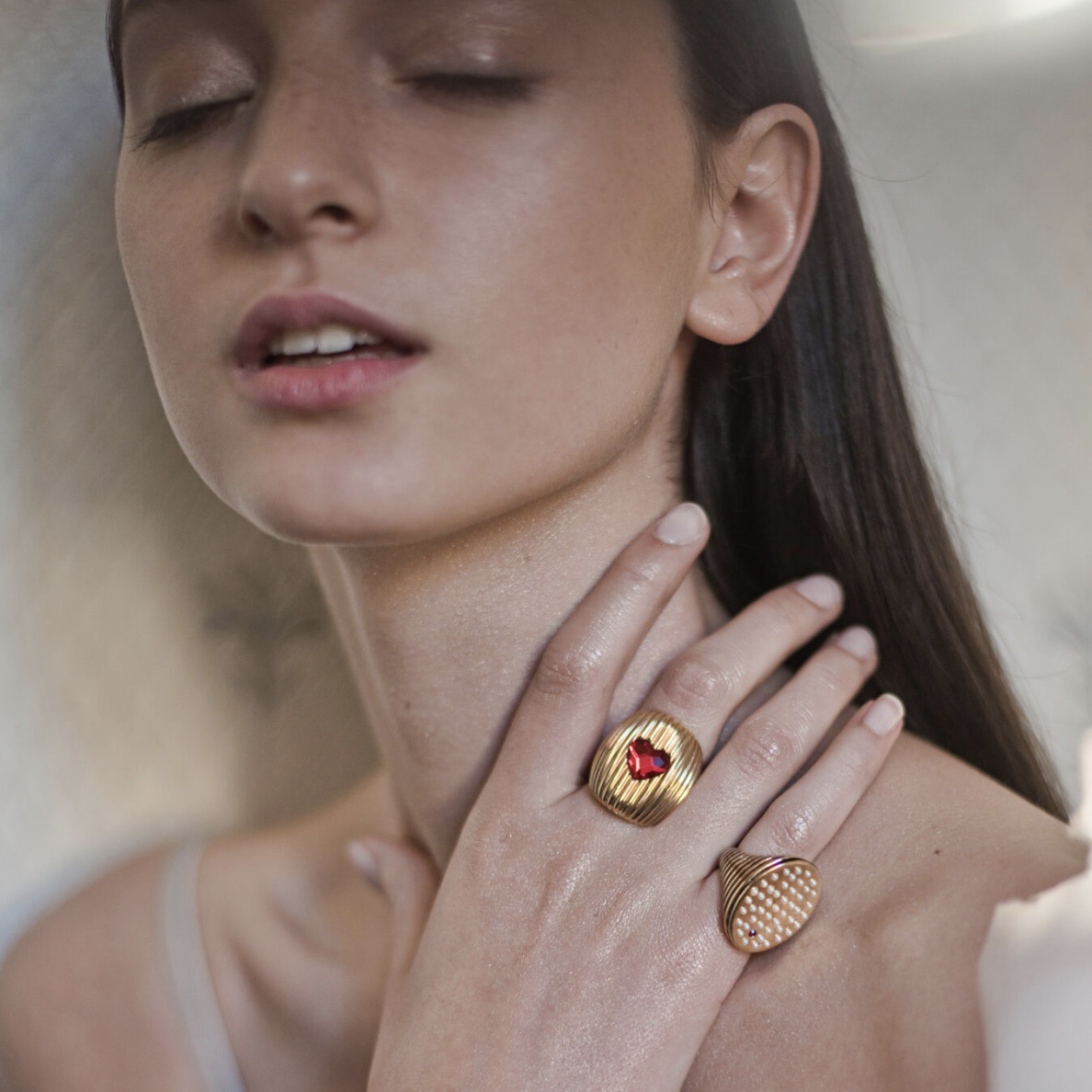 北京仓|Acchitto-Cor-红色 心形水晶 戒指[意大利设计师]