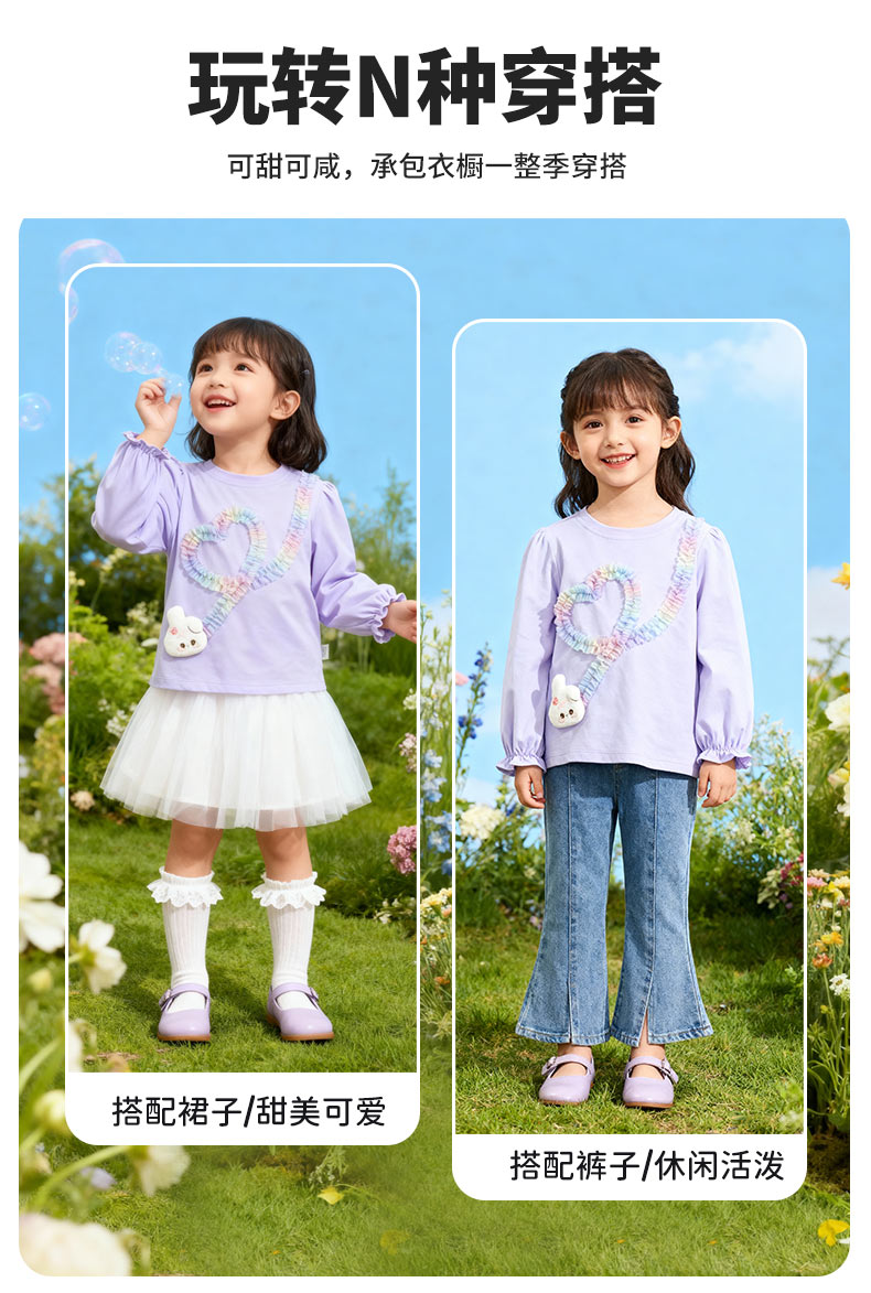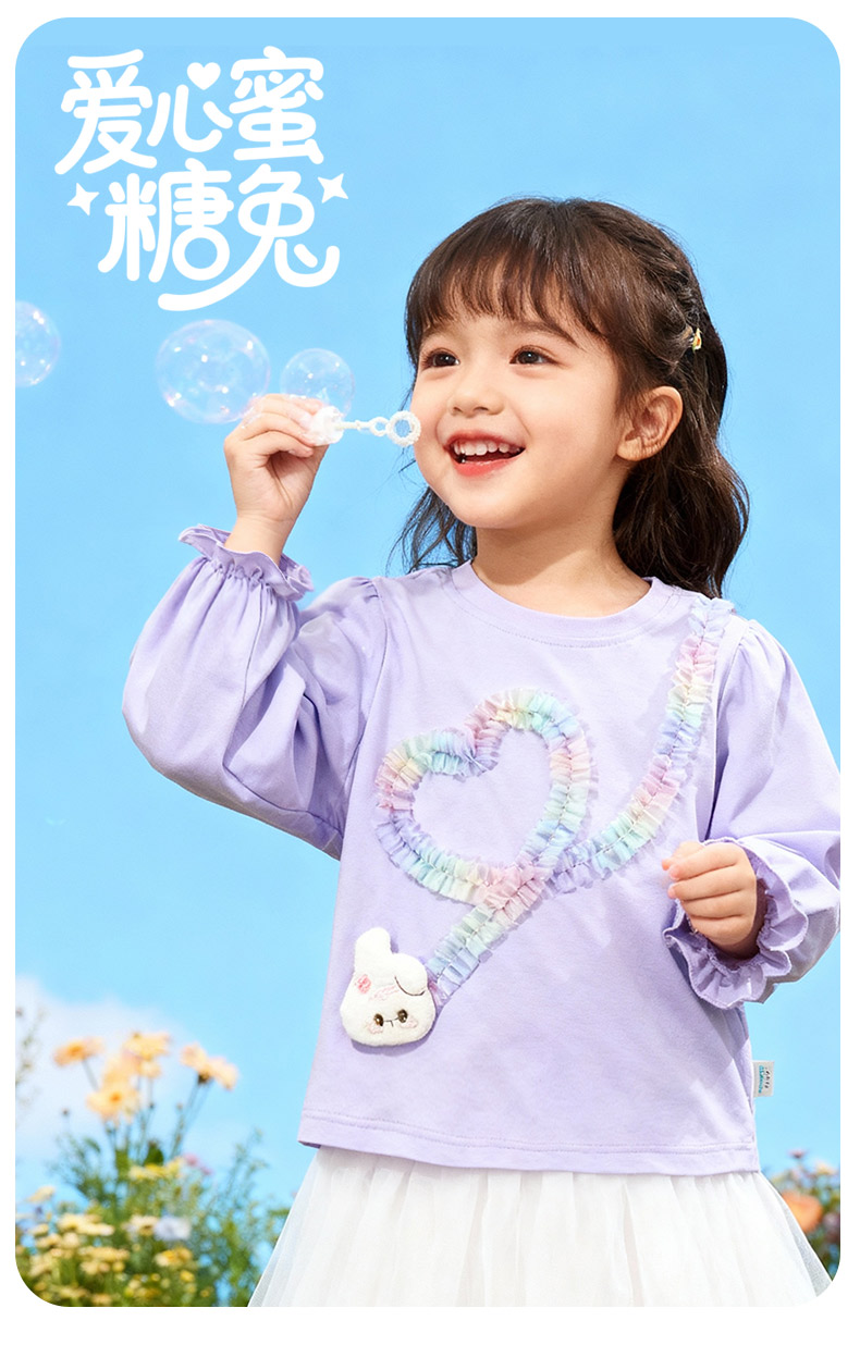 贝贝怡新款春秋套头甜美休闲长袖T恤