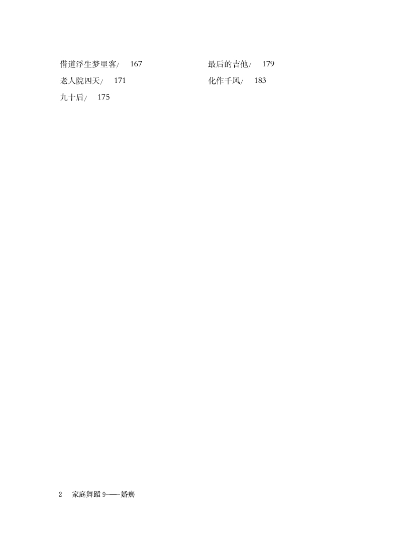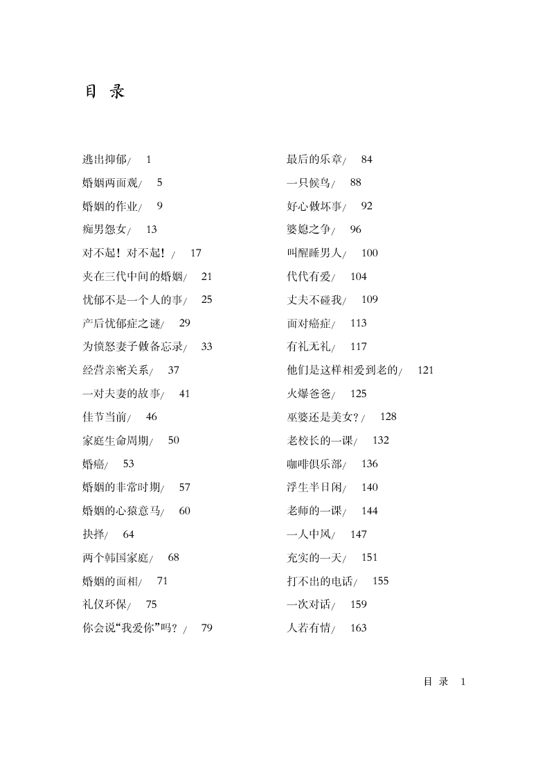 李维榕的家庭治疗随笔,离婚家庭的孩子专题,如“两性之争”、“夹在父母中间的女儿”、“婚姻的缘分”、“重组家庭”、“三代女性:串在同一条线上的灯”、“卡在‘铁三角’的隐蔽青年”、“痴男怨妇与痴心孩子”、“齐人有一妻一妾”、“孩子会聆听”、“孩子的身心症”等。