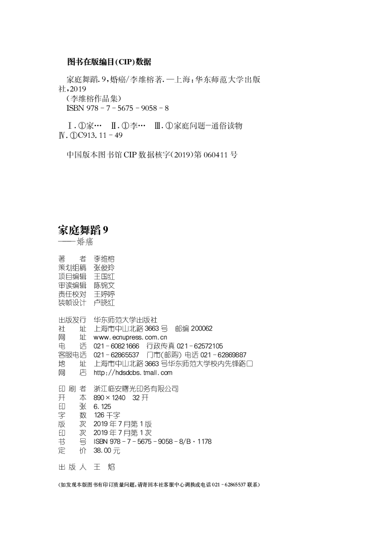 家庭舞蹈9 婚癌 李维榕 原生家庭真实案例 亲密关系疗愈治愈 心理学图书 正版 华东师范大学出版社