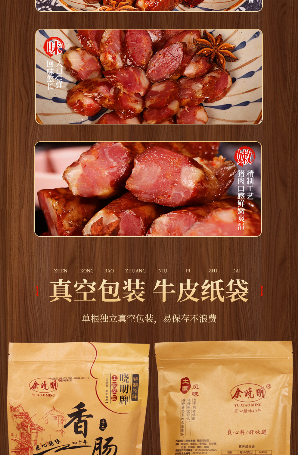 【恩施】余晓明土家风味原味香肠 500g/袋