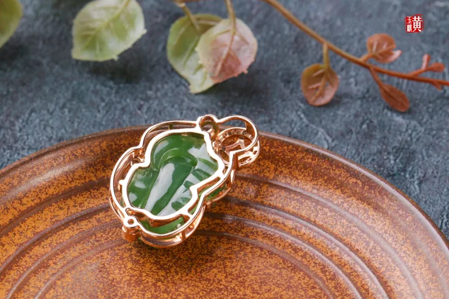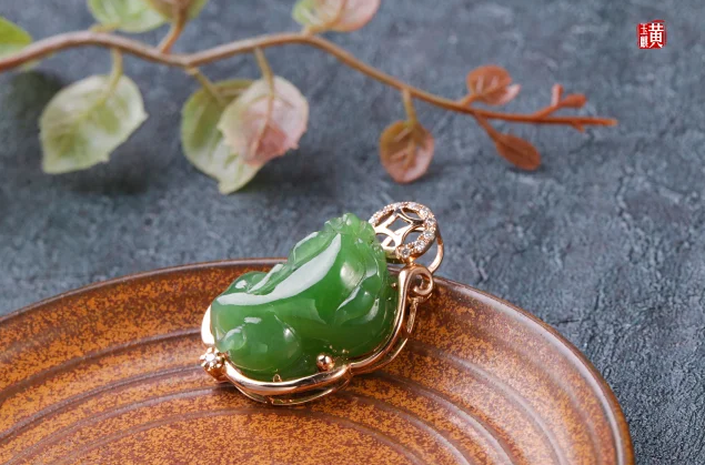 18K金镶钻和田碧玉【招财貔貅】吊坠