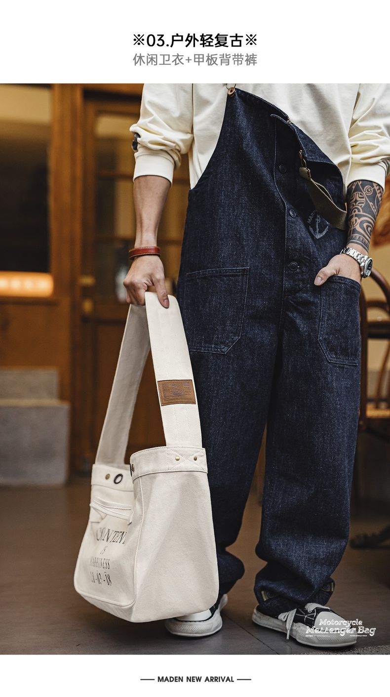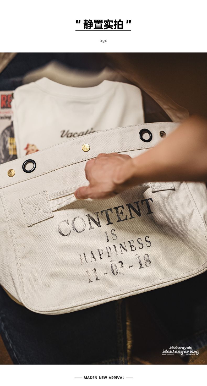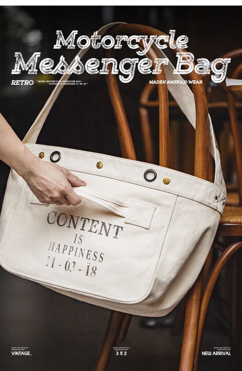 工装优选美式复古机车报童包大容量帆布邮差包印花字母斜挎包男生