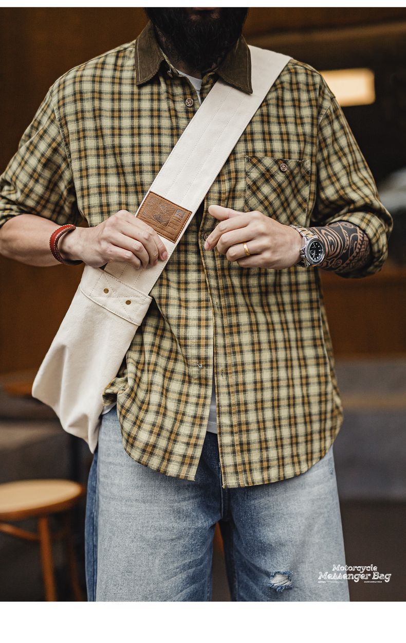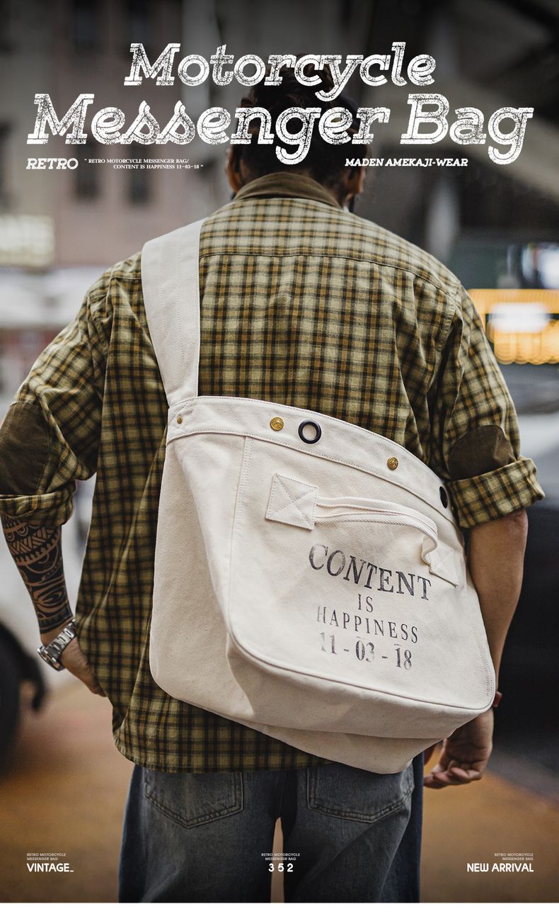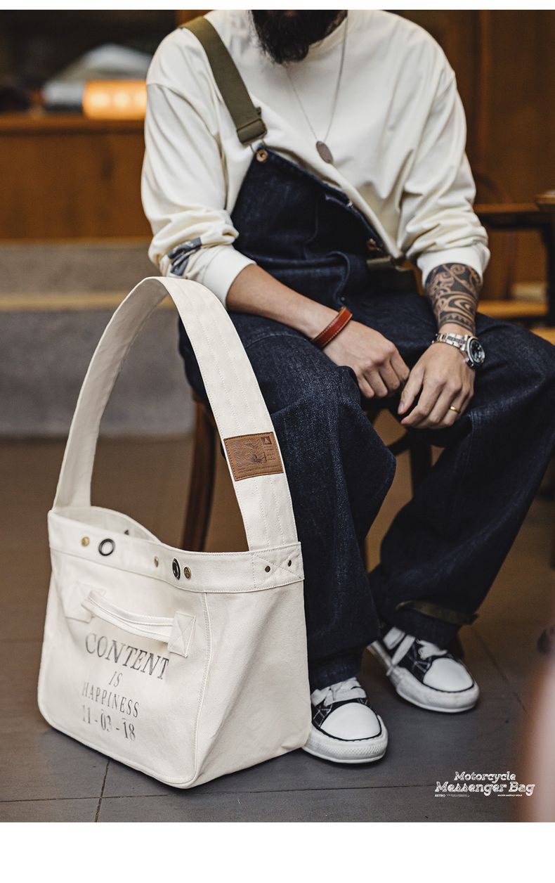 工装优选美式复古机车报童包大容量帆布邮差包印花字母斜挎包男生