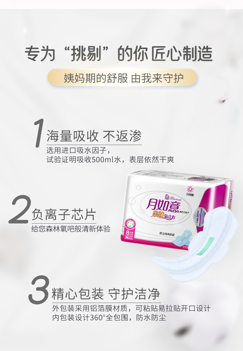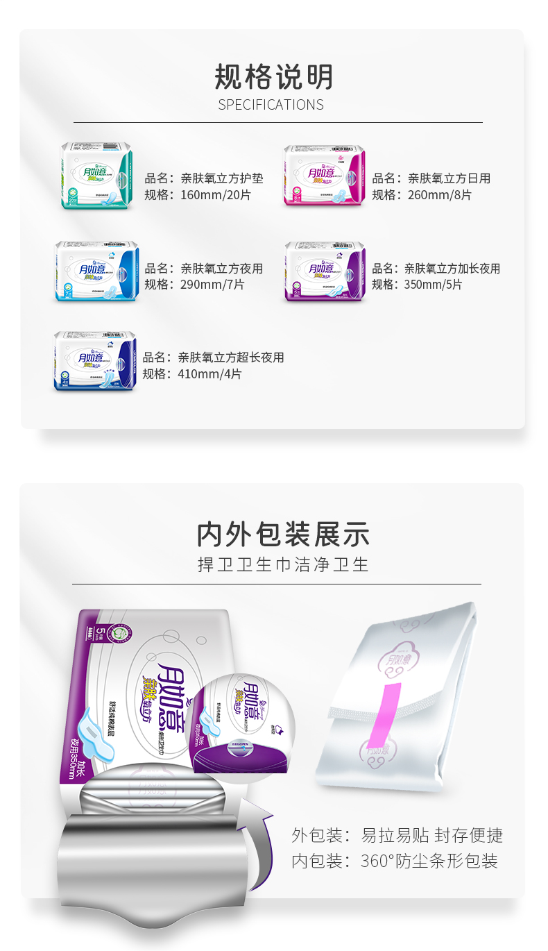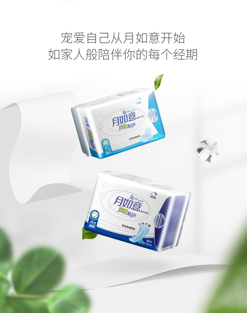 月如意亲肤氧立方系列纯棉日用夜用加长姨妈巾单包