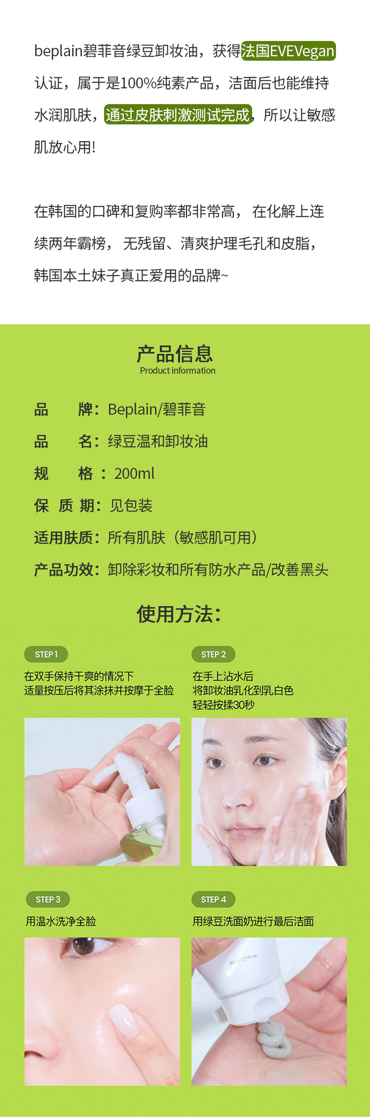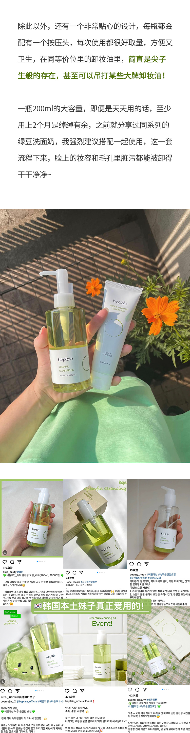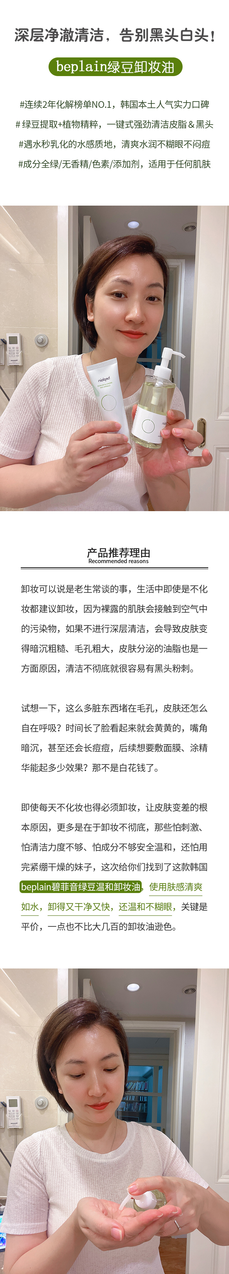 【3天左右发】beplain绿豆卸妆油,连续2年韩国化解霸榜NO.1!轻松卸净厚重彩妆,让每个毛孔干净清透,质地比水还清爽,遇水乳化,洗完不油腻!上脸清爽0负担,洗完脸感觉皮肤透亮,不闷痘!