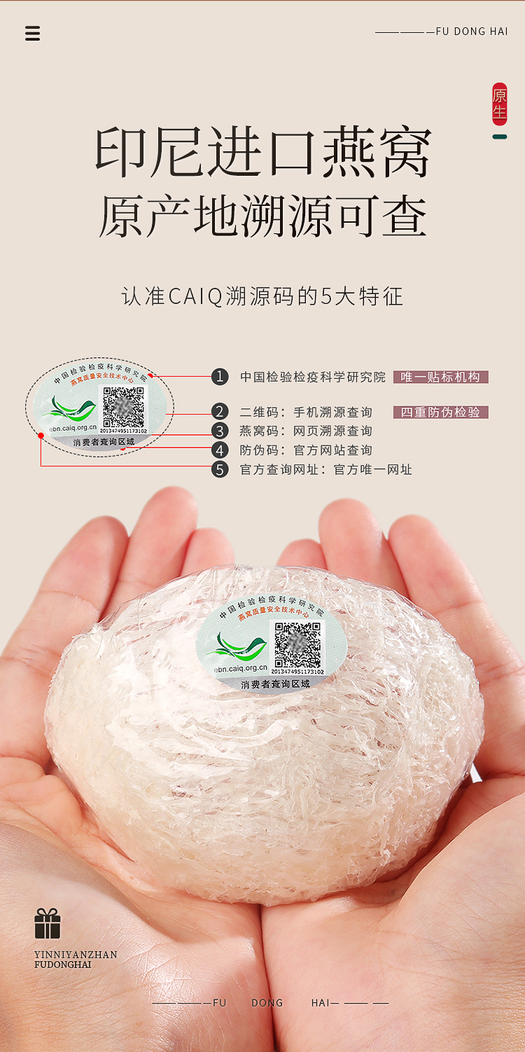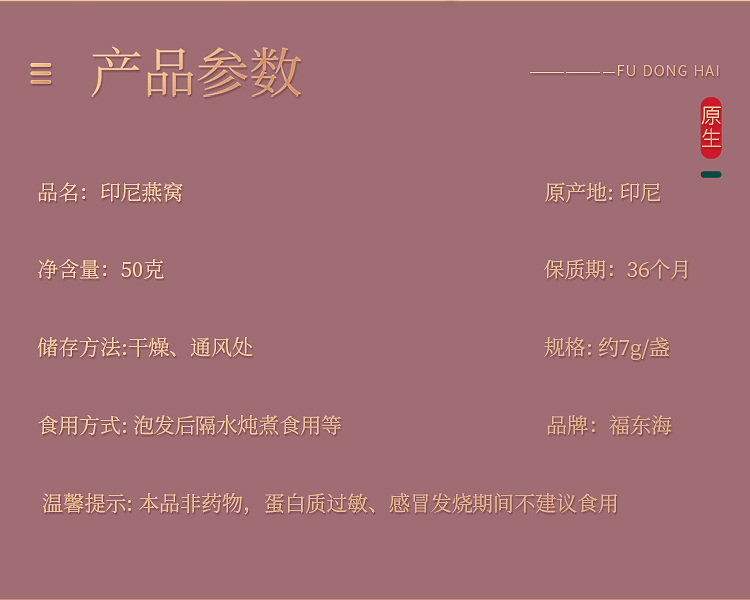 福东海 燕窝50g(梳盏) 印尼 干燕窝燕盏礼盒送礼
